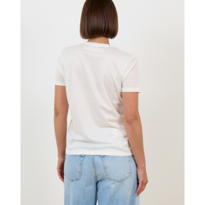 Dit witte t-shirt van zacht katoen vormt de perfecte basis voor elke look. De regular fit pasvorm zorgt voor comfortabel draaggemak, terwijl de subtiele V-hals een elegante touch toevoegt. De korte mouwen en tijdloze witte kleur maken dit Joseph basic tot een veelzijdig kledingstuk dat in elke kledingkast thuishoort.