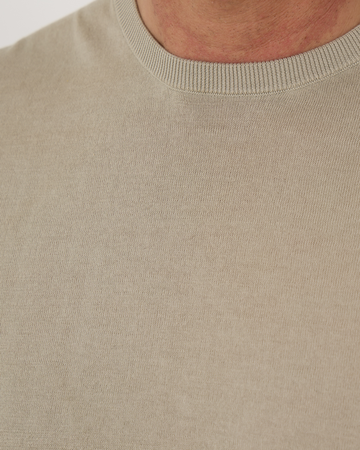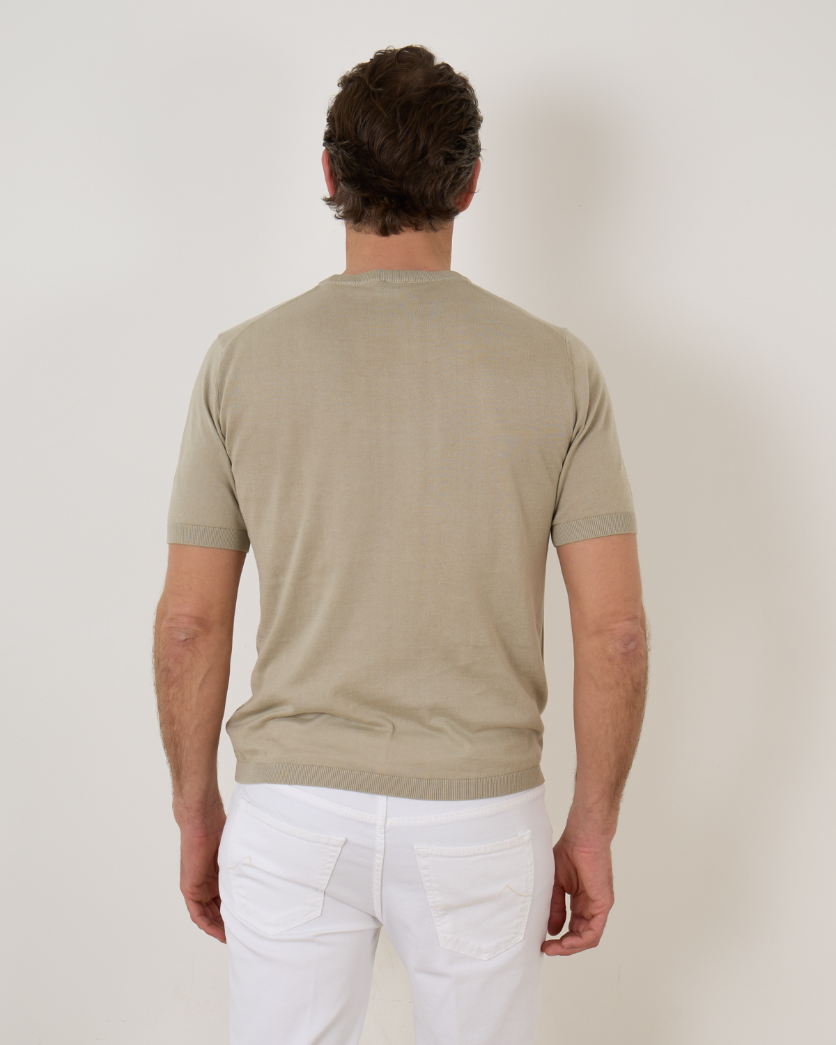 Dit knitwear T-shirt van het merk Aspesi dient als mooi basis stuk bij vele looks. Het is vervaardigd uit een fijne knit van katoen en uitgevoerd in de kleur zand. Het T-shirt heeft een aangesloten pasvorm en is voorzien van ribboorden aan de ronde hals, mouwen en zoom.