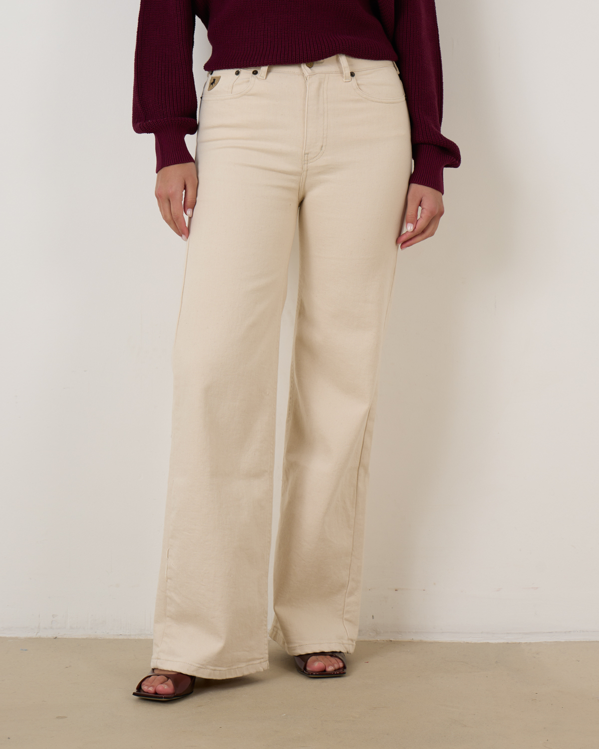 De Palazzo-R Mistral van Lois is een tijdloze, wijde broek met een elegante pasvorm. Dit model heeft een middelhoge taille en een flatterende, vloeiende snit. Gemaakt van een comfortabele stretchstof voor een perfecte fit. Verkrijgbaar in de verfijnde tint Hamshire Ecru, ideaal voor een stijlvolle en moeiteloze look. Lengtemaat: 32