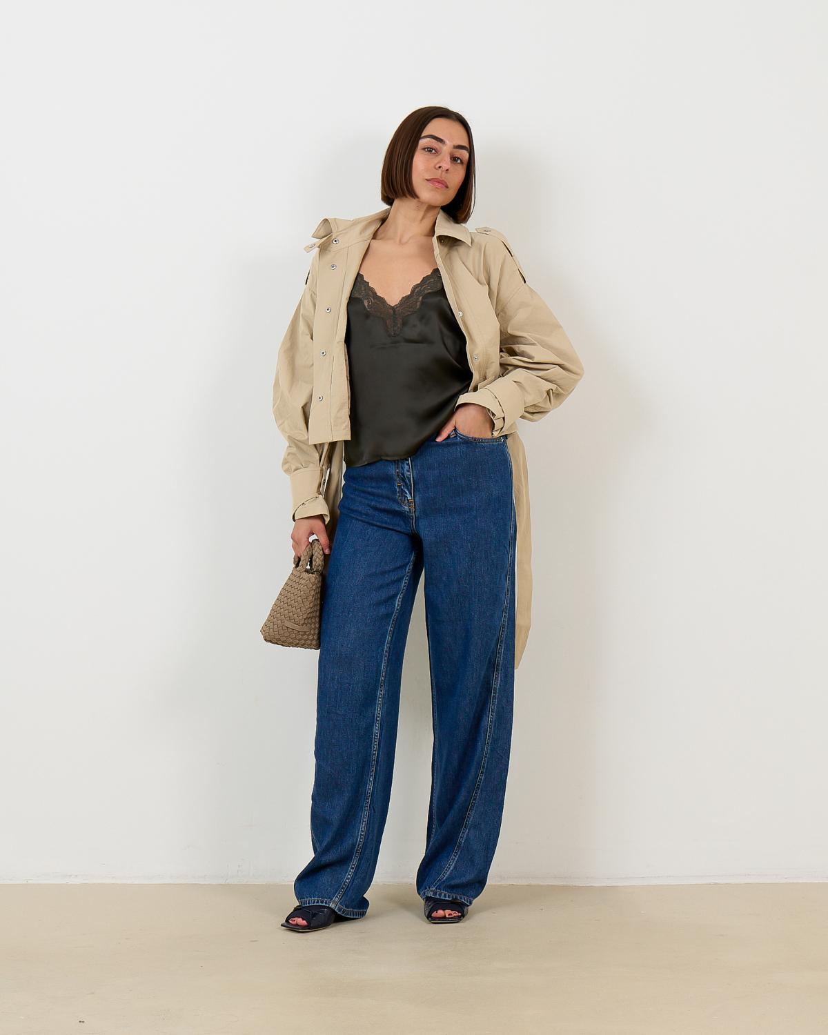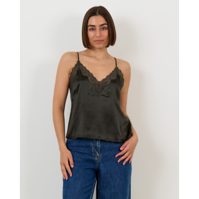 Deze groene zijden camisole straalt verfijnde elegantie uit. Het 100% zijden materiaal voelt luxueus aan en valt los over je lichaam. De verfijnde kanten details langs de V-hals en achterzijde zorgen voor een romantische twist. De dunne verstelbare bandjes geven optimaal draagcomfort. Door de losvallende pasvorm creëer je een prachtige silhouet die zowel comfort als stijl combineert.