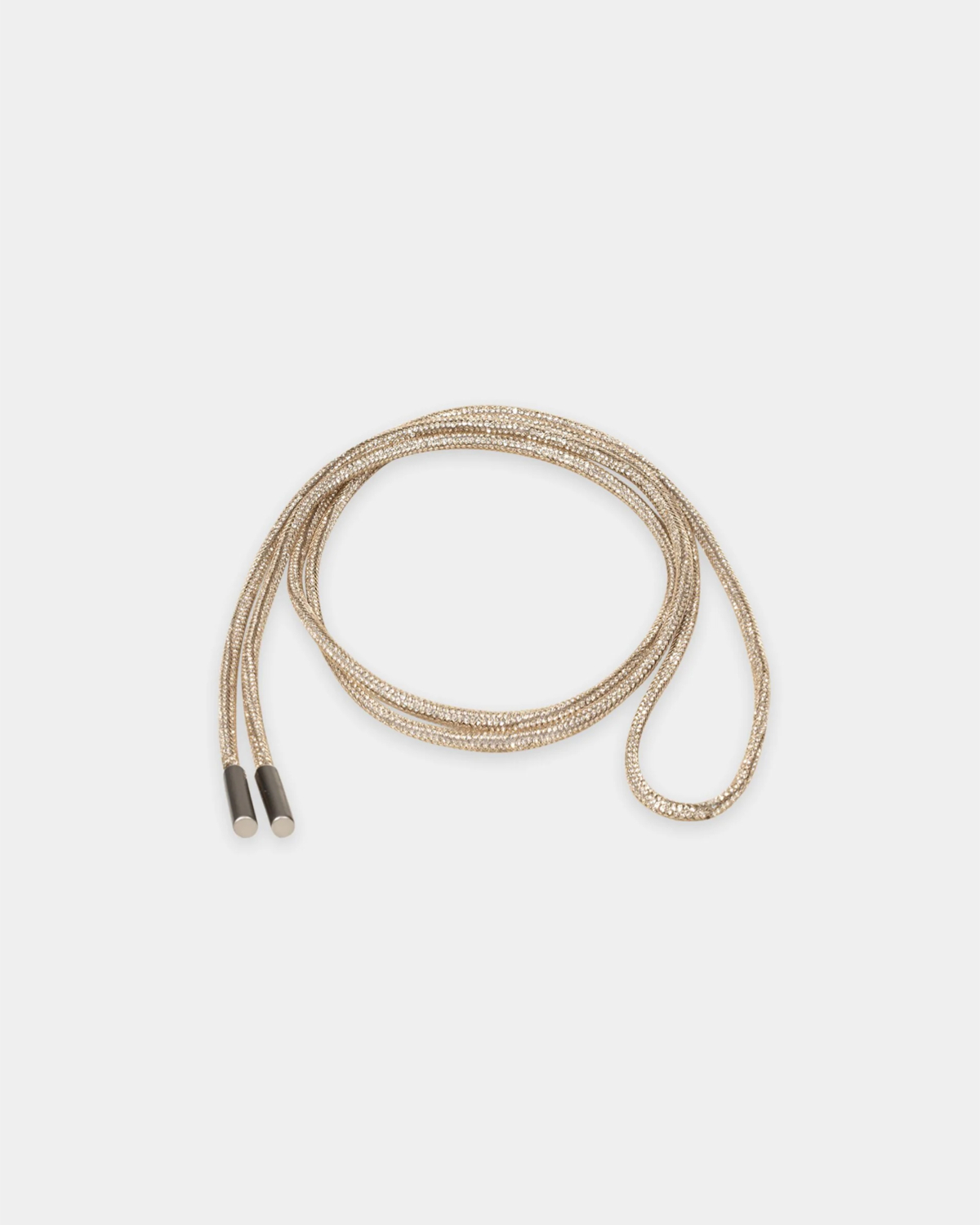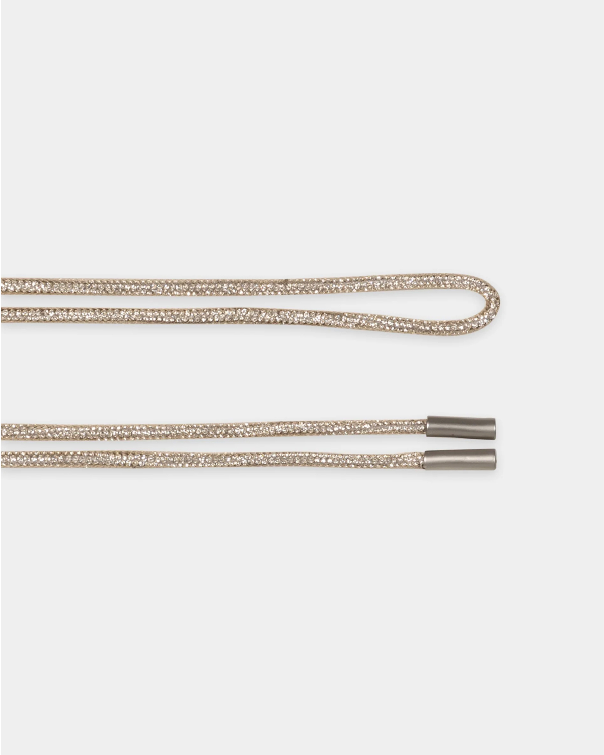 Deze glitterende ceintuur in zilver brengt instant glamour aan je outfit. Het luxueuze koord bestaat uit een mix van glas, polyester en metaalvezels die zorgen voor de prachtige glitterafwerking. De smalle, gevlochten structuur met donkergrijze eindstukken geeft de ceintuur een moderne uitstraling. Door de lange lengte kun je deze op verschillende manieren knopen en dragen.