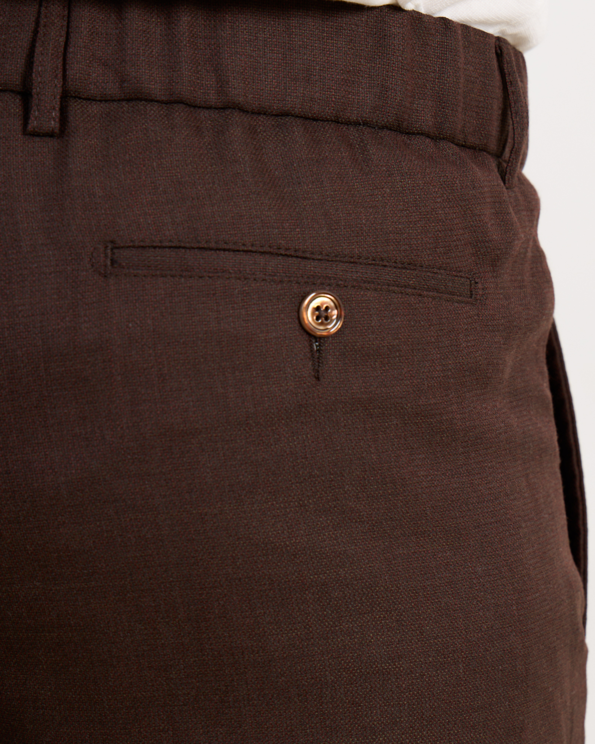 Combineer deze veelzijdige herenbroek met een wit overhemd en blazer voor zakelijke gelegenheden, of draag hem casual met een gebreide trui en loafers. De tijdloze bruintinten passen uitstekend bij neutrale kleuren als beige, crème en marine.