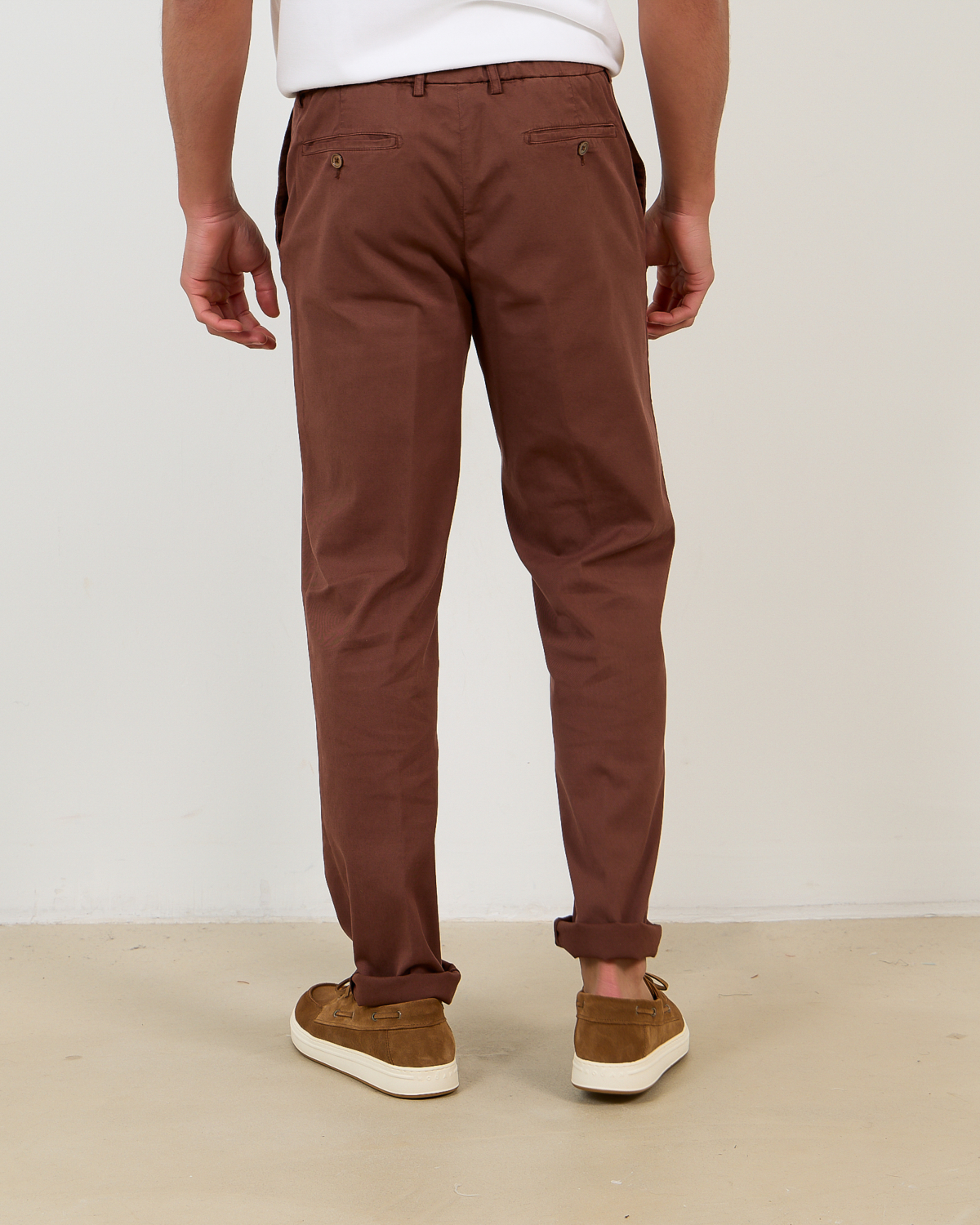 Draag deze heren kleding Marco Pescarolo pantalon met een wit overhemd voor een zakelijke look, of combineer met een gebreide trui en sneakers voor een relaxte weekend stijl. De neutrale terra tint past uitstekend bij navy blazers en donkerblauwe shirts.