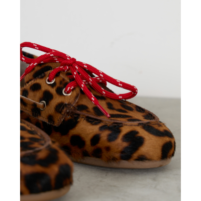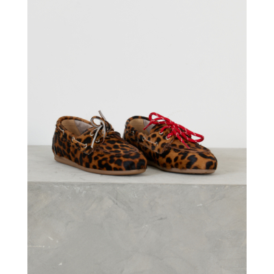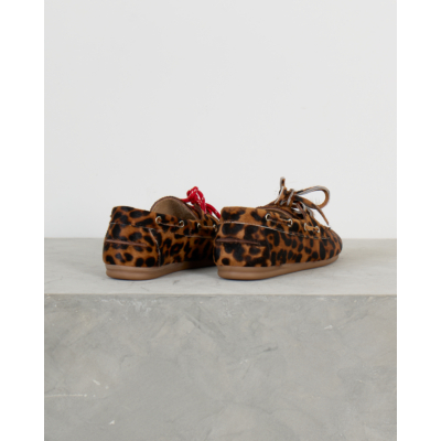 Deze bruine boat loafer van Posa toont een opvallend luipaarddessin in warme bruintinten. Het hoogwaardige leer zorgt voor duurzame kwaliteit en comfort. De klassieke vetersluiting met metalen oogjes biedt een perfecte pasvorm, terwijl de platte rubberen zool zorgt voor stabiliteit. Het verfijnde leopardprint maakt van deze schoen een echte eyecatcher.