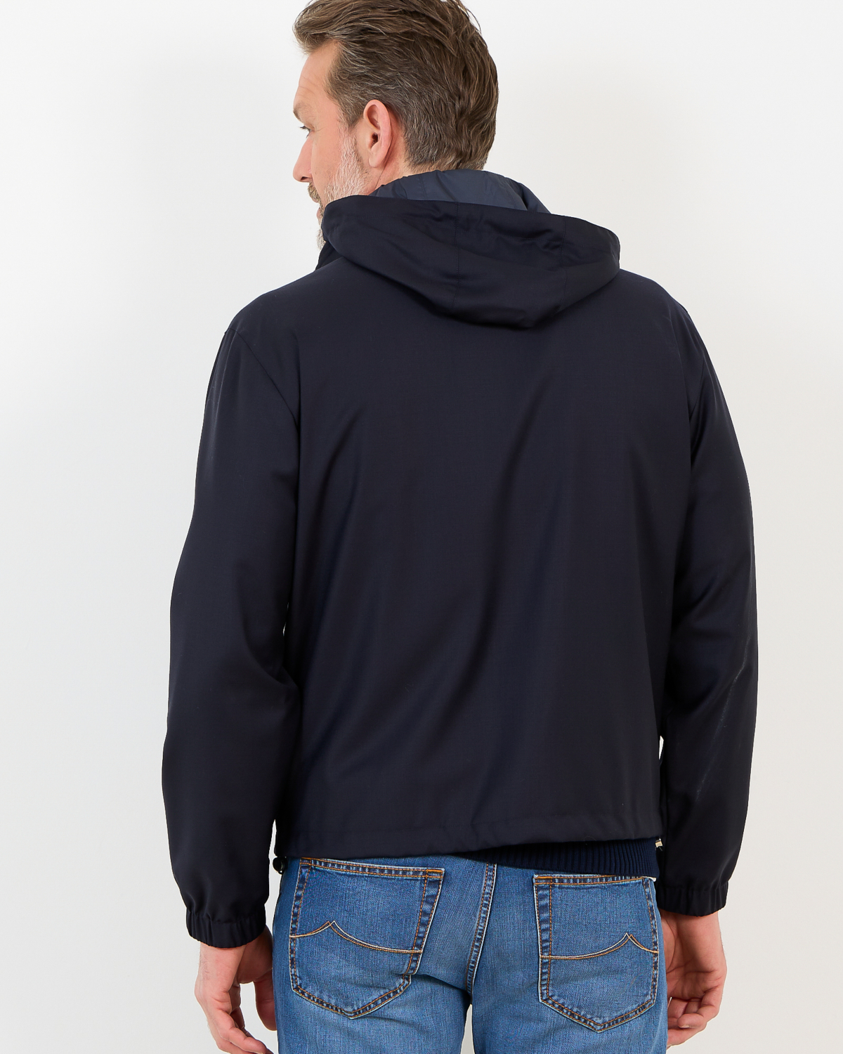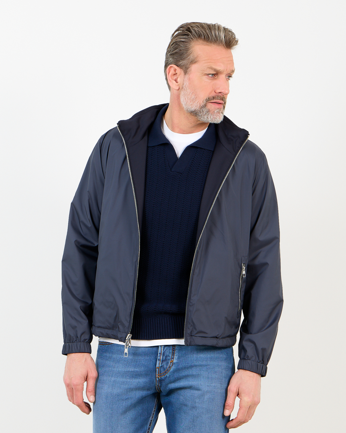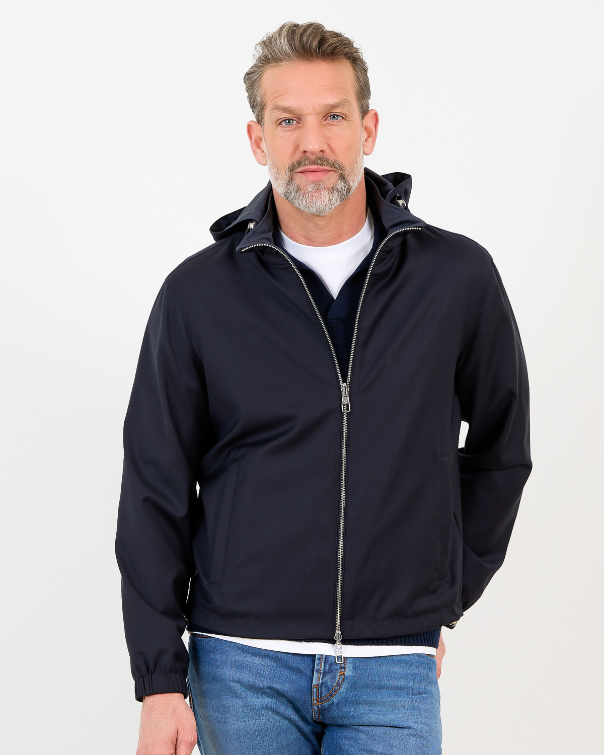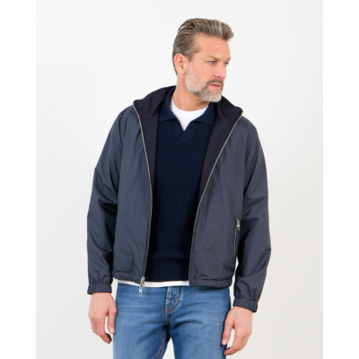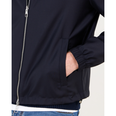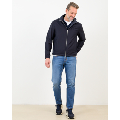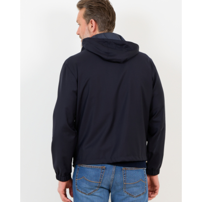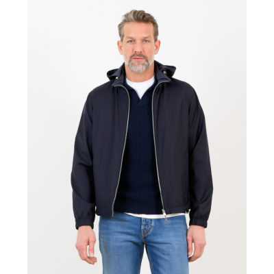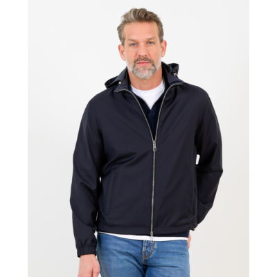 Deze veelzijdige merino wollen jack in marine biedt je twee kledingstukken in één. De 100% scheerwol voelt zacht aan en houdt je warm, terwijl de waterresistente behandeling beschermt tegen lichte buien. De regular fit valt comfortabel en beweegt soepel mee. De capuchon is afneembaar en de dubbele ritssluiting maakt het omkeren eenvoudig. Elastische boord bij mouwen en taille zorgt voor een nette afwerking.