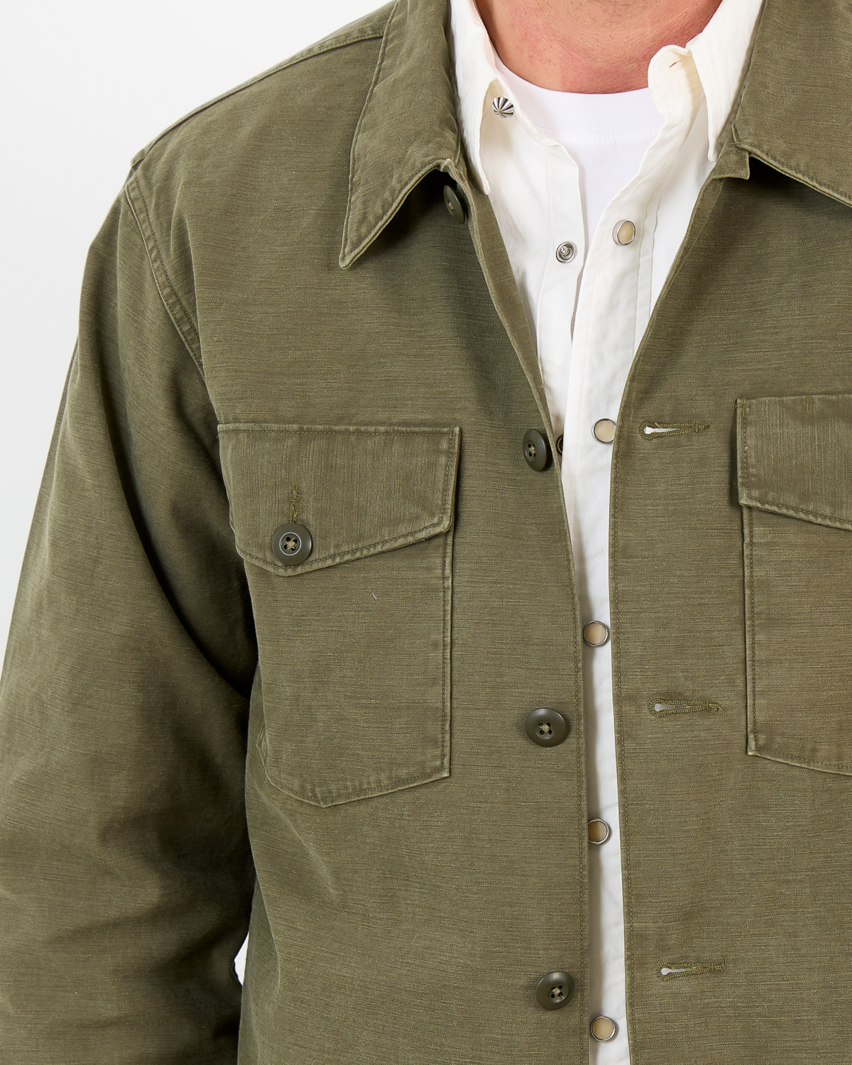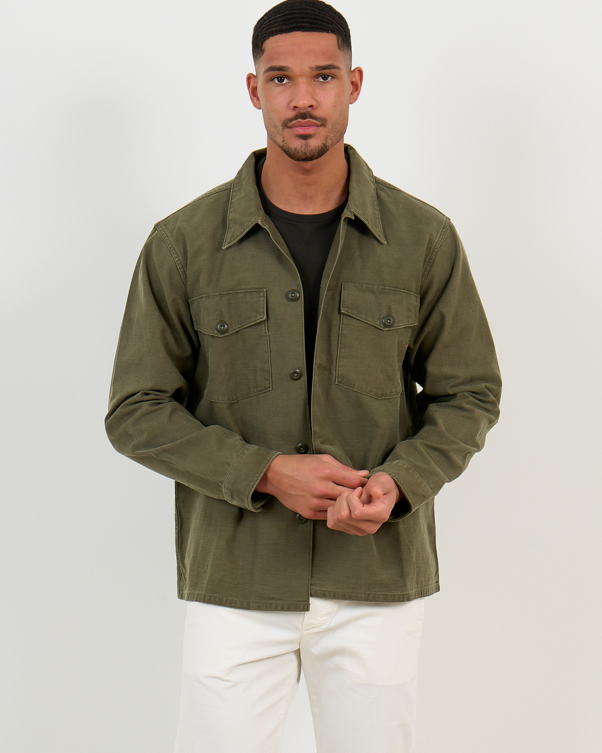 Dit kaki groene overshirt van RRL combineert militaire invloeden met eigentijdse heren kleding. Het 100% katoenen shirt heeft een relaxed-fit pasvorm die comfortabel draagt. De klassieke kraag en knoopsluiting met donkergroene knopen geven het shirt een verzorgde uitstraling. Twee borstzakken met klepjes en knopen zorgen voor functionele details, terwijl de lange mouwen het shirt veelzijdig maken.