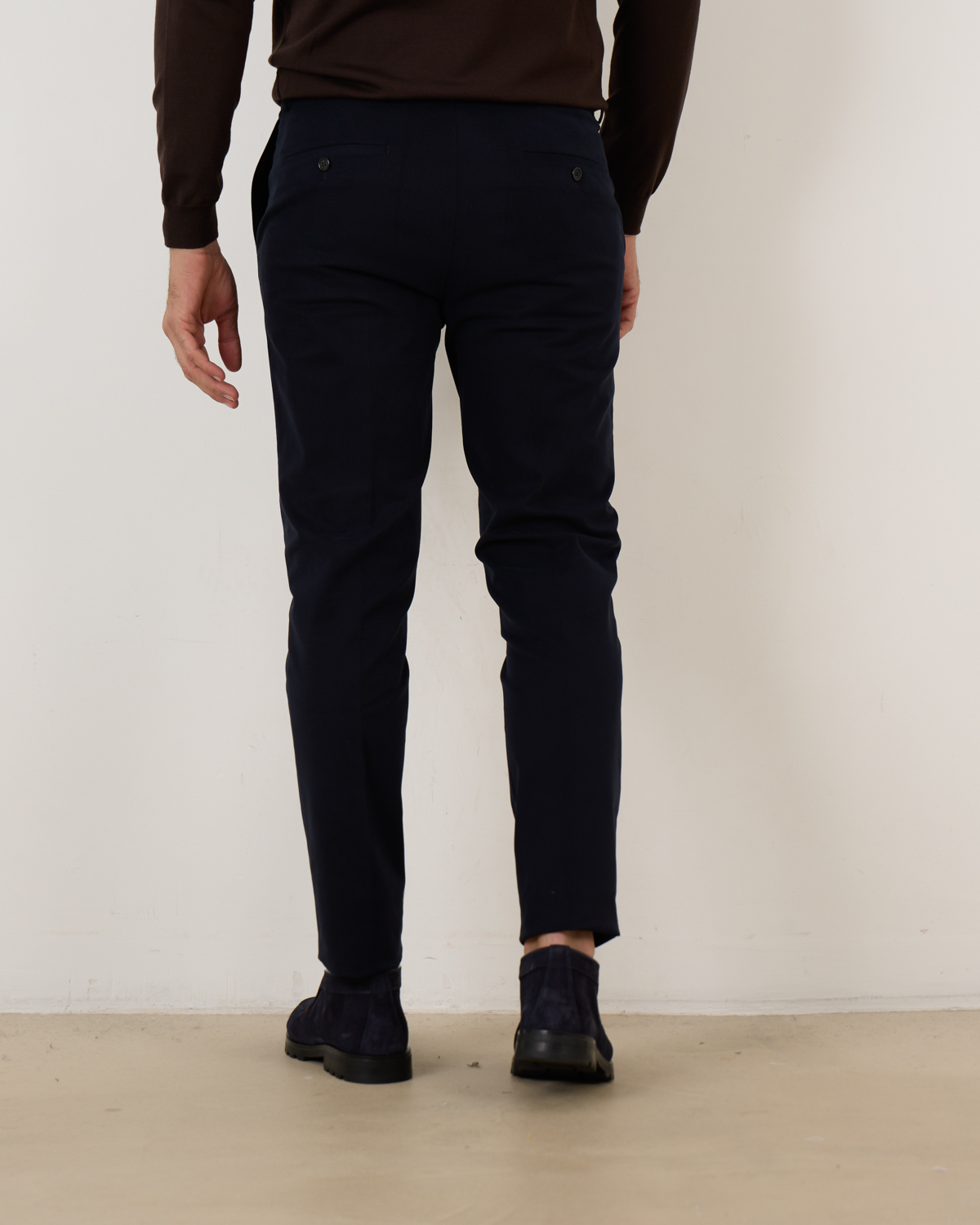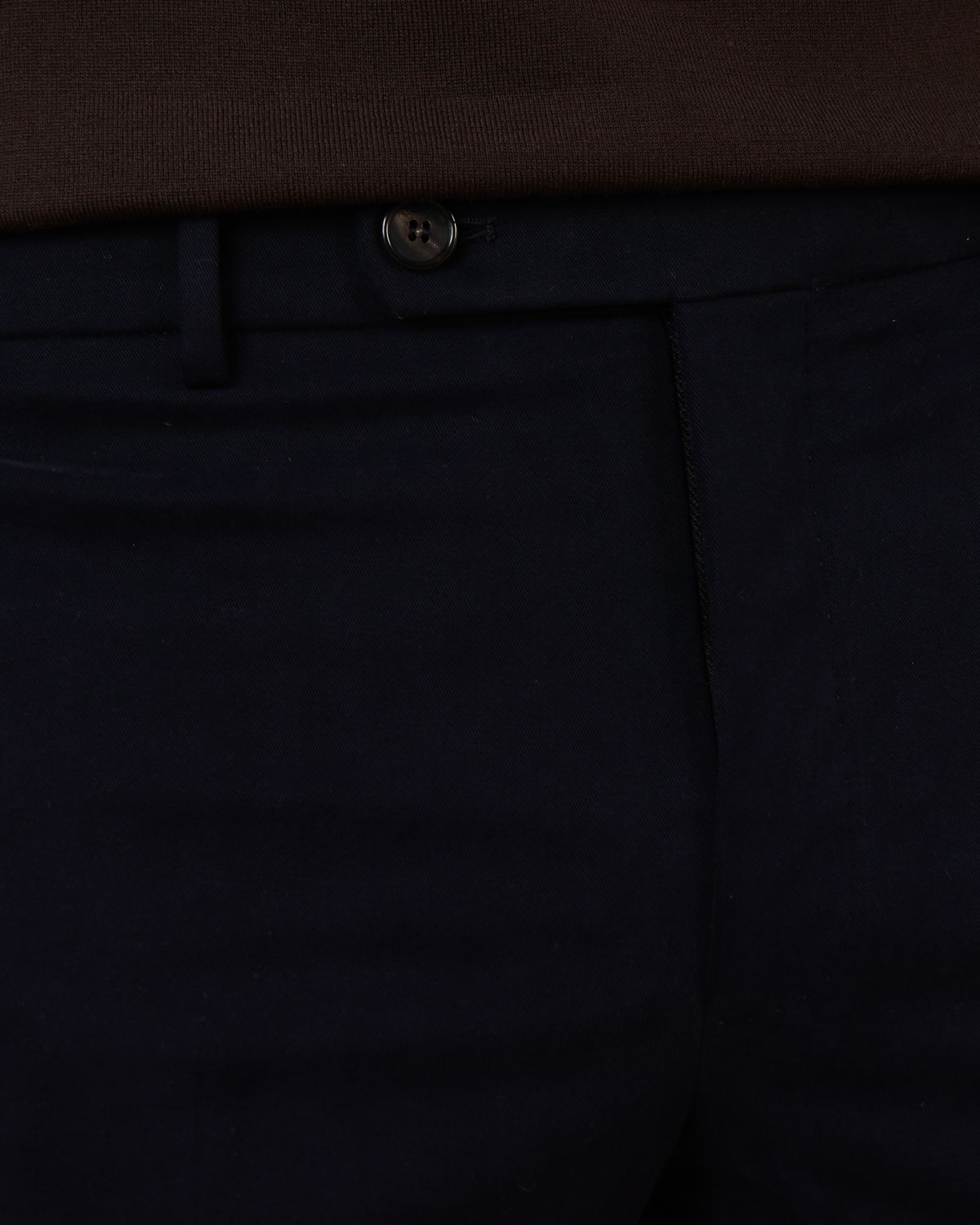 Deze regular-fit pantalon van Slowear is uitgevoerd in een diepe navy tint en vervaardigd uit een comfortabele katoen-stretchmix. Het Royal Batavia-weefsel zorgt voor een verfijnde uitstraling, terwijl de tijdloze snit en nette afwerking veelzijdigheid bieden voor zowel zakelijke als casual looks.