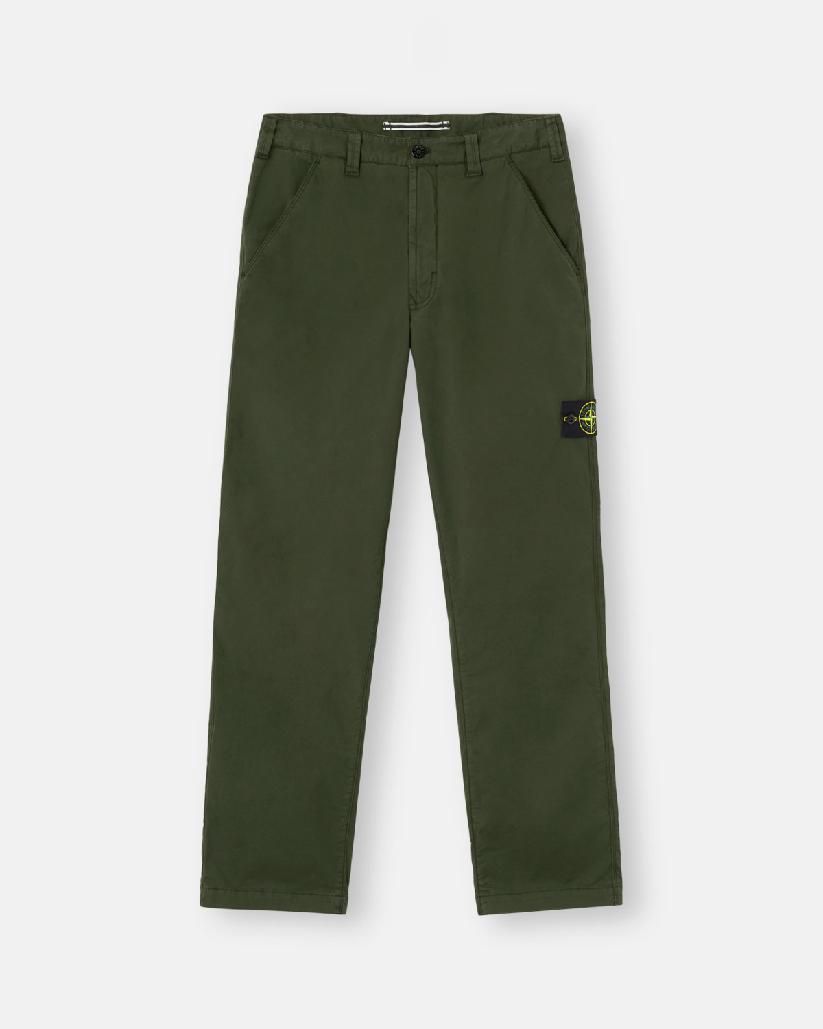 Deze olijfgroene chino van Stone Island combineert verfijnd katoen met een vleugje elastane voor optimaal draagcomfort. De regular fit zorgt voor een ontspannen silhouet, terwijl de kenmerkende kompasroos op het bovenbeen het vakmanschap van het merk onderstreept. Het katoenen weefsel voelt zacht aan en beweegt natuurlijk mee door je dag. Combineer deze heren kleding met een wit overhemd voor een verzorgde look, of kies voor een gebreide trui voor casual elegantie.