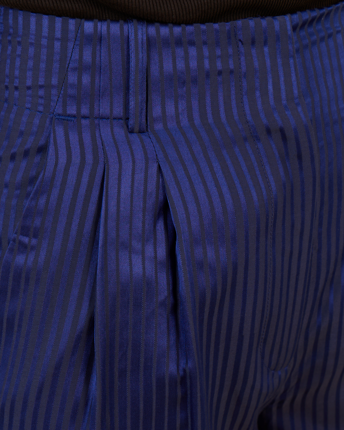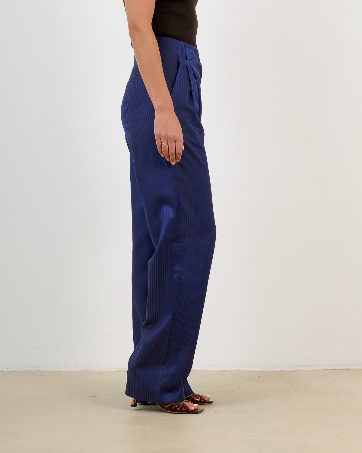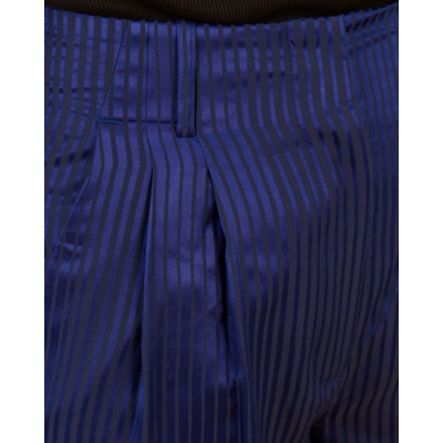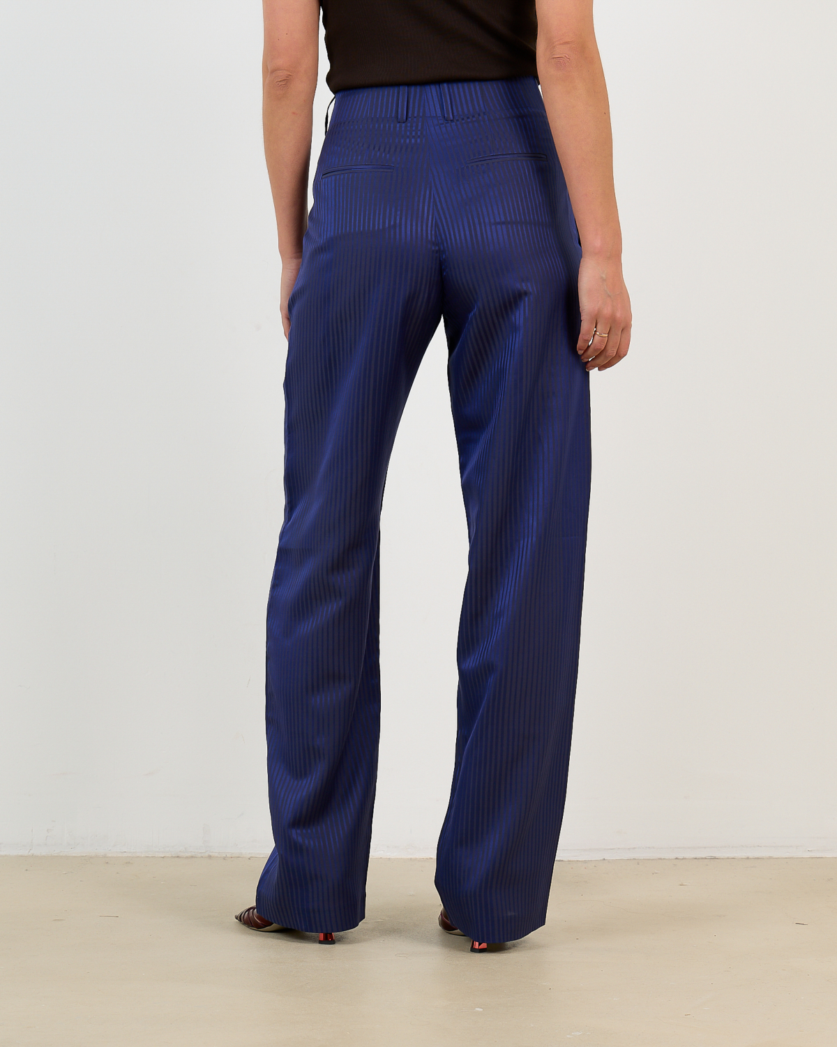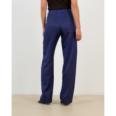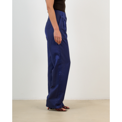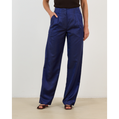 Deze gestreepte satijnen pantalon navy van Indress combineert perfect met een effen blouse voor een chique zakelijke look. Voor een moderne twist draag je deze dames kleding met een gebreide trui of casual top. De rijke navy kleur maakt deze Indress pantalon ideaal om te matchen met zowel neutrale tinten als opvallende kleuren.