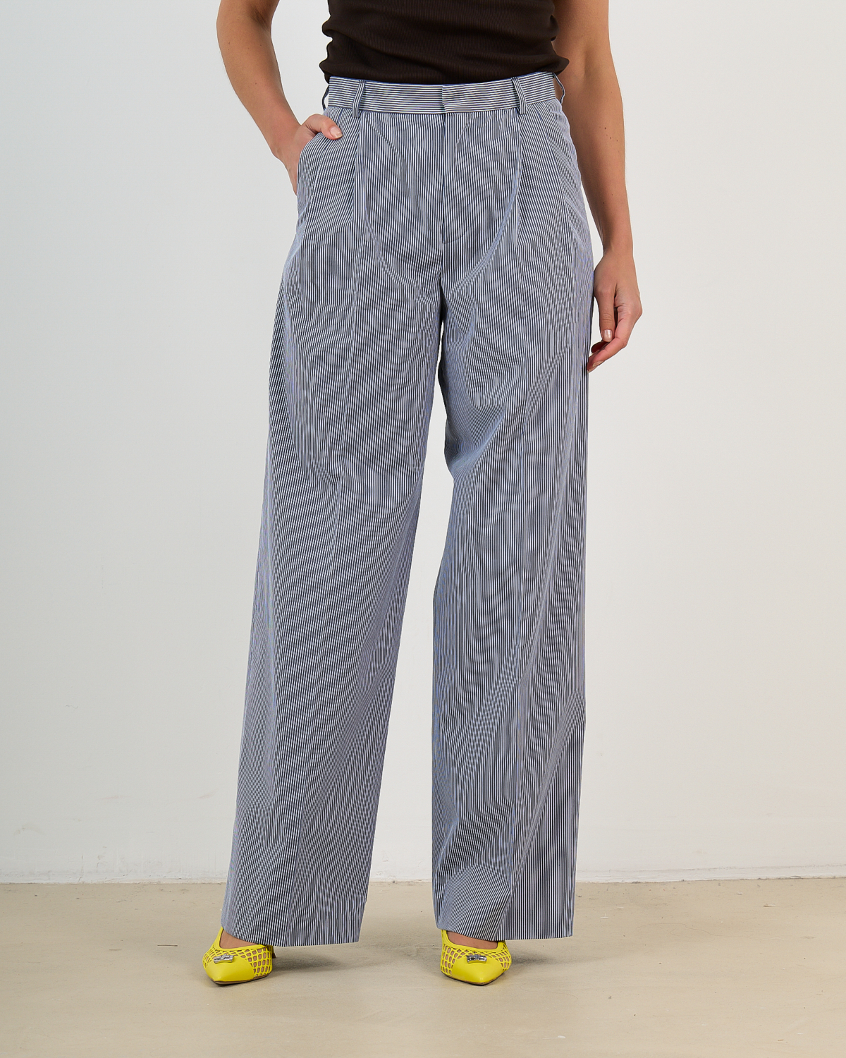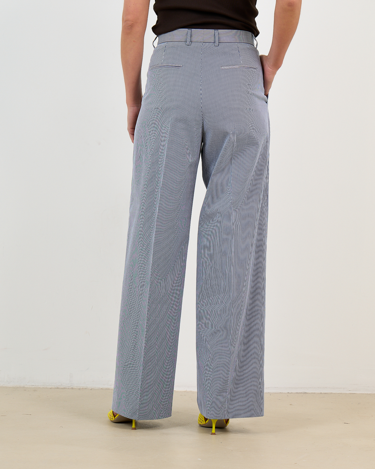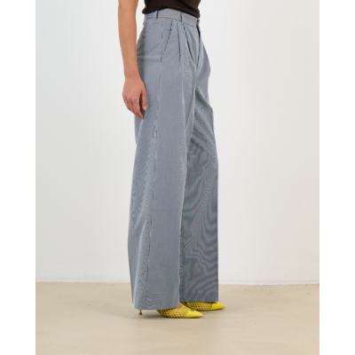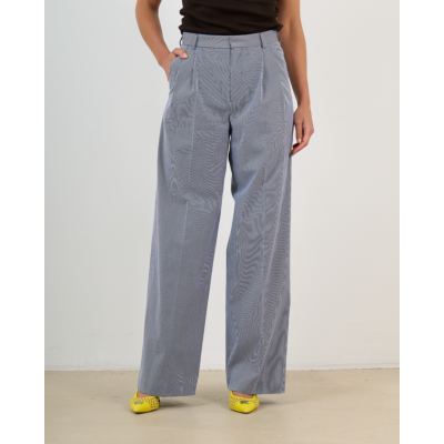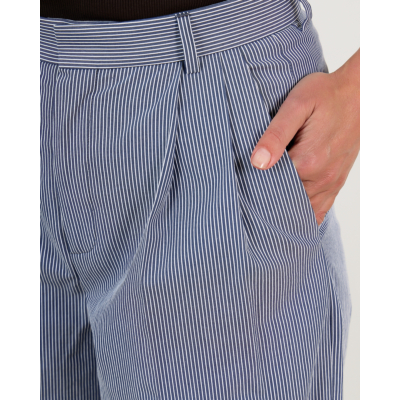 Combineer de Margate Gestreepte Pantalon Wit Navy met een effen blouse in marine voor een geraffineerde look, of kies voor een witte top om de streepjes te laten spreken. Ook prachtig te stylen met een blazer voor zakelijke gelegenheden of met een casual trui voor een ontspannen maar chique uitstraling.