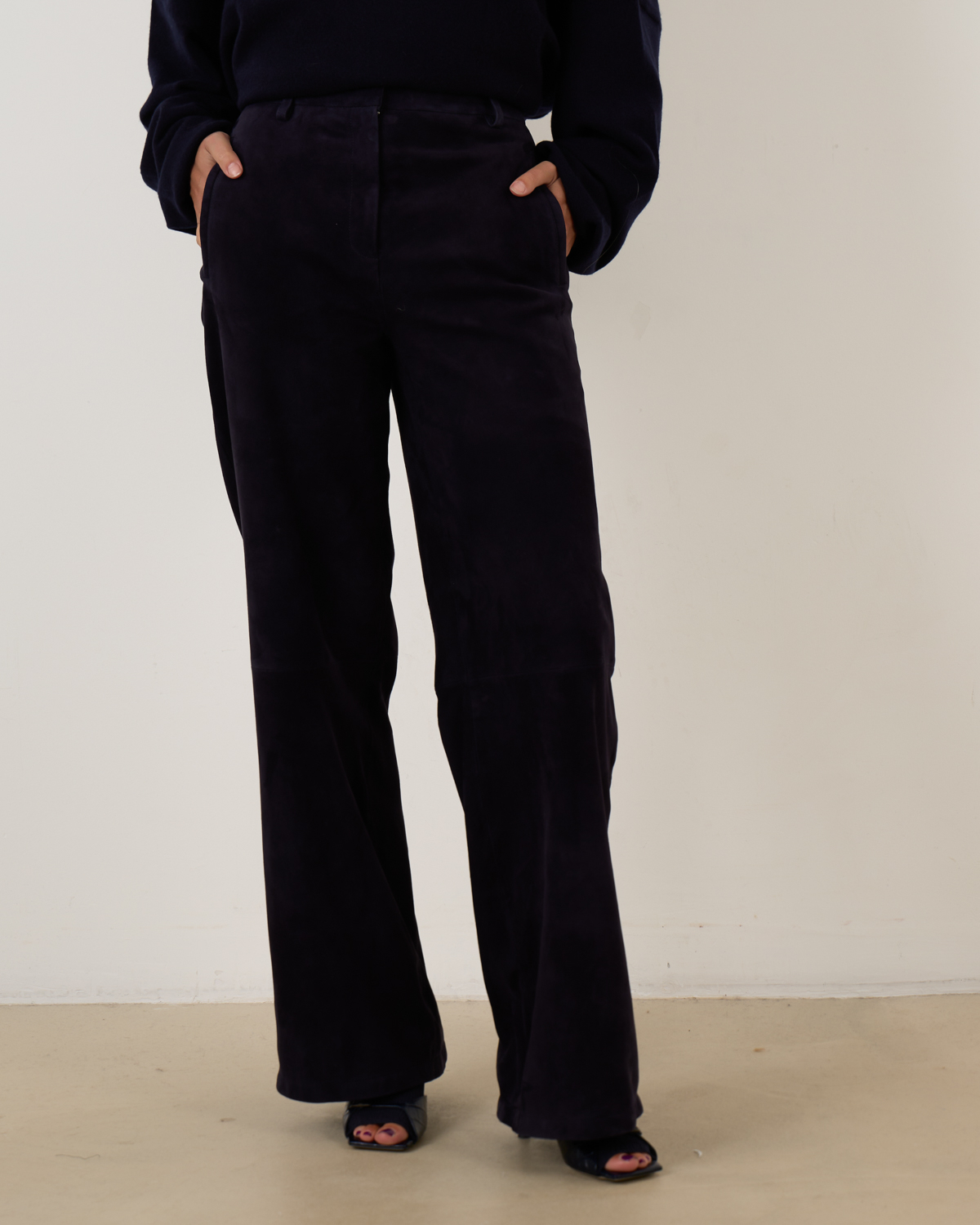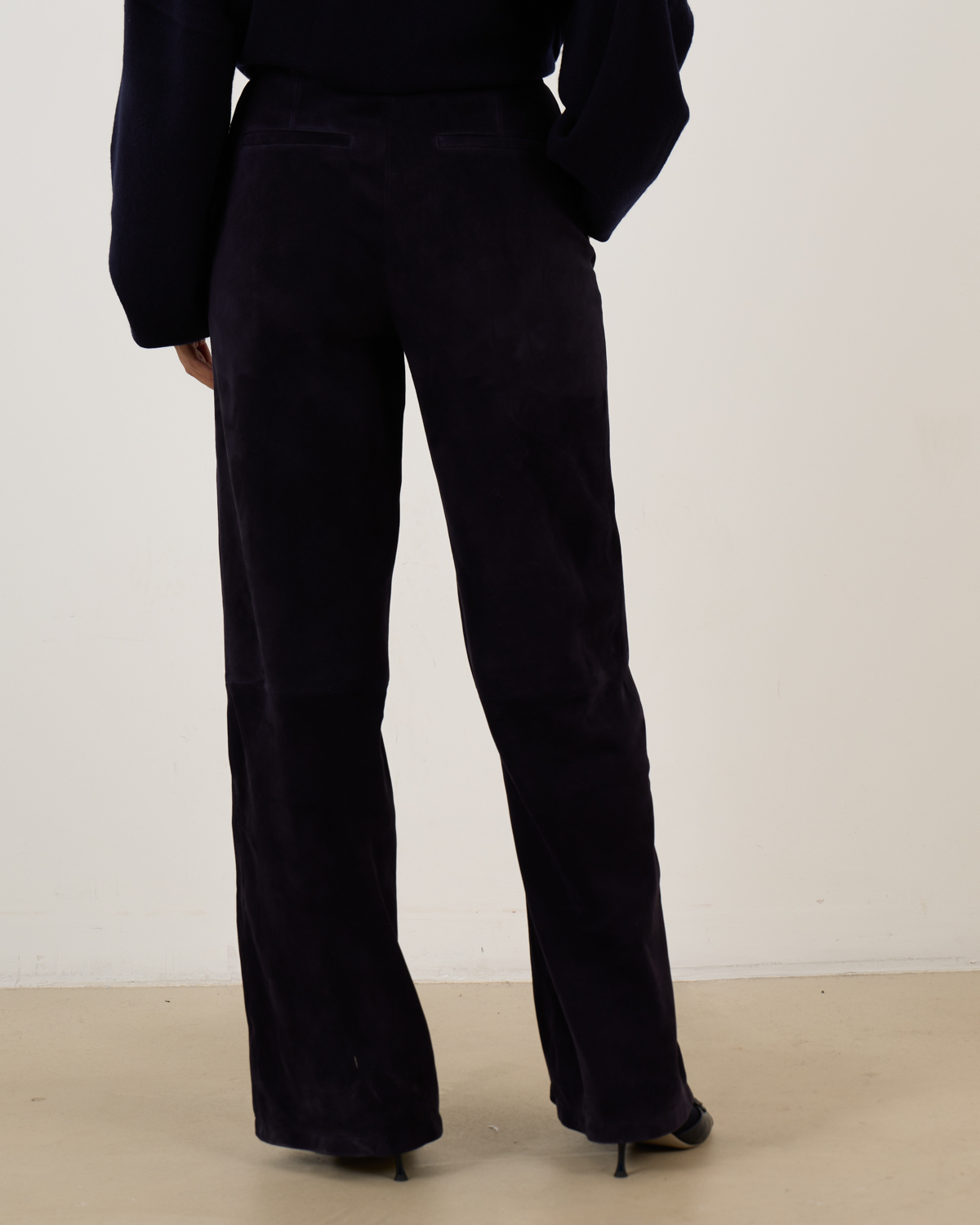 Deze pantalon is uitgevoerd in 100% lamsleer met een suède afwerking en lichte stretch. Dat zorgt voor een zachte feel, optimale bewegingsvrijheid en een luxe uitstraling.