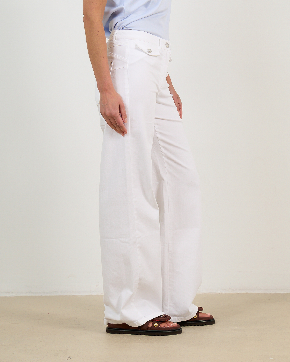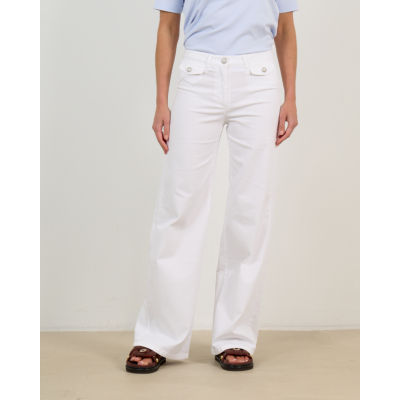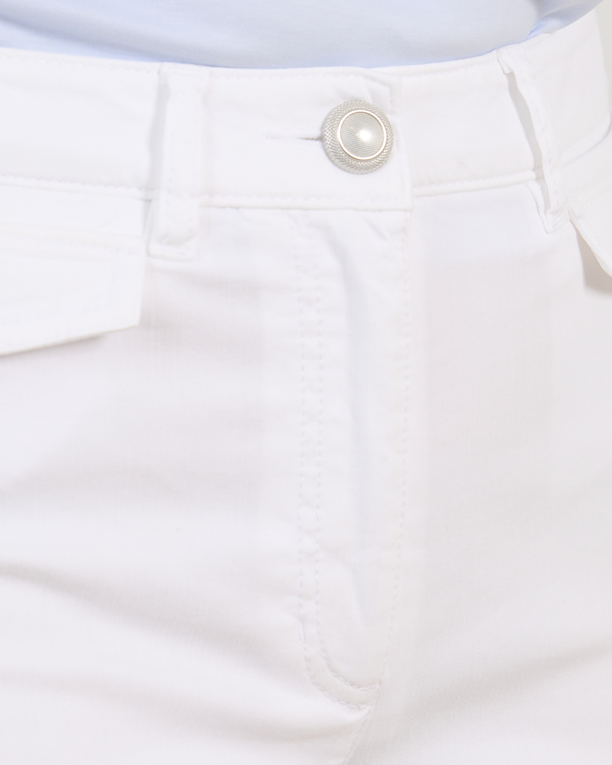 Deze elegante witte broek van Luisa Cerano kenmerkt zich door zijn tijdloze regular fit pasvorm. De broek is voorzien van decoratieve knoopdetails op de voorzakken en heeft een klassieke rechte pijp. De witte kleur straalt frisheid en veelzijdigheid uit. Het ontwerp combineert moderne details met een klassieke broeksilhouet, wat zorgt voor een verfijnde en comfortabele draagervaring.