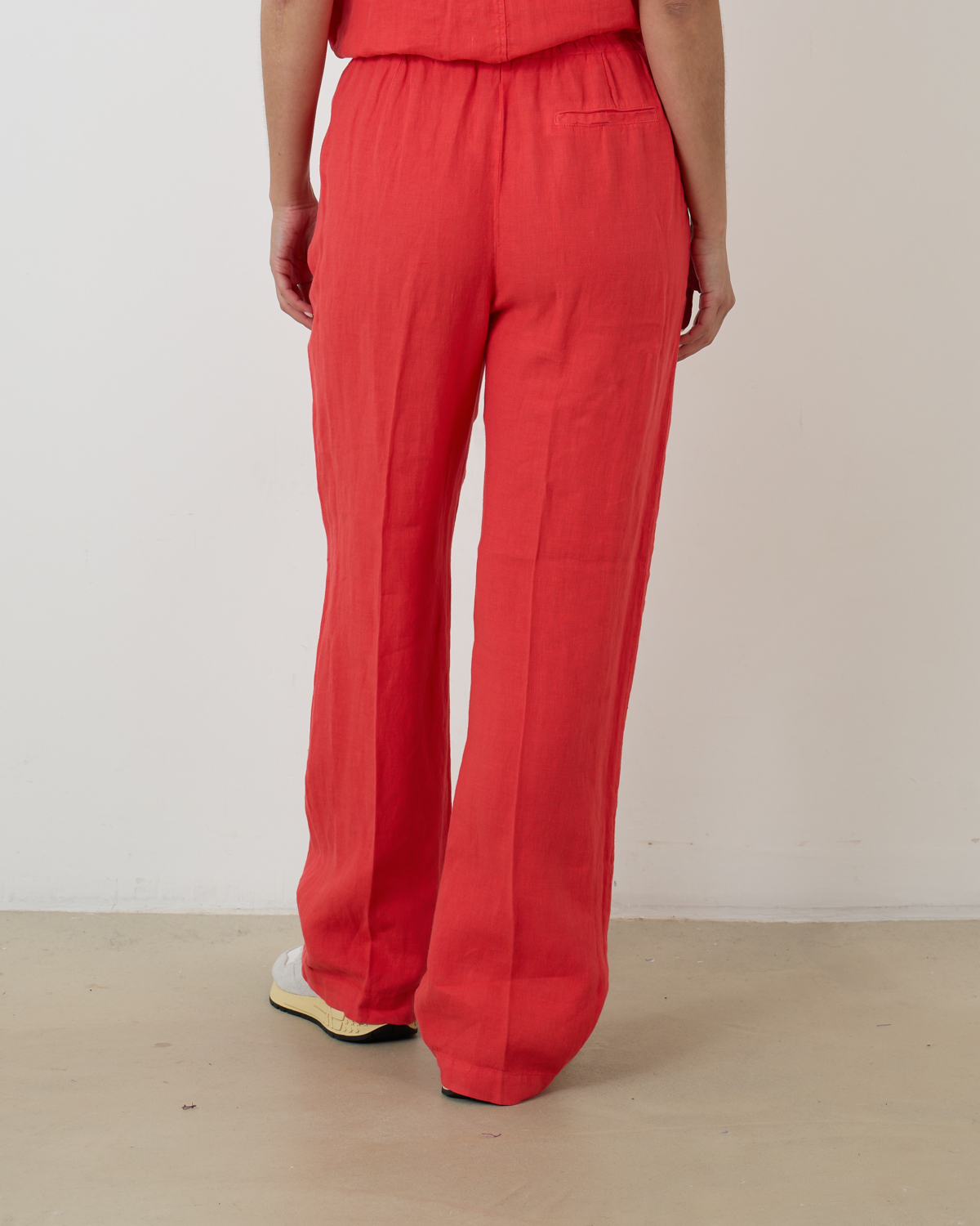 De Penn&Ink broek in de kleur Pomegranate is een stijlvolle en comfortabele toevoeging aan je garderobe. Gemaakt van 100% linnen, biedt deze broek een luchtige en elegante uitstraling. Het model heeft een elastische taille met trekkoorden voor een perfecte pasvorm en een flatterend flaired silhouet.