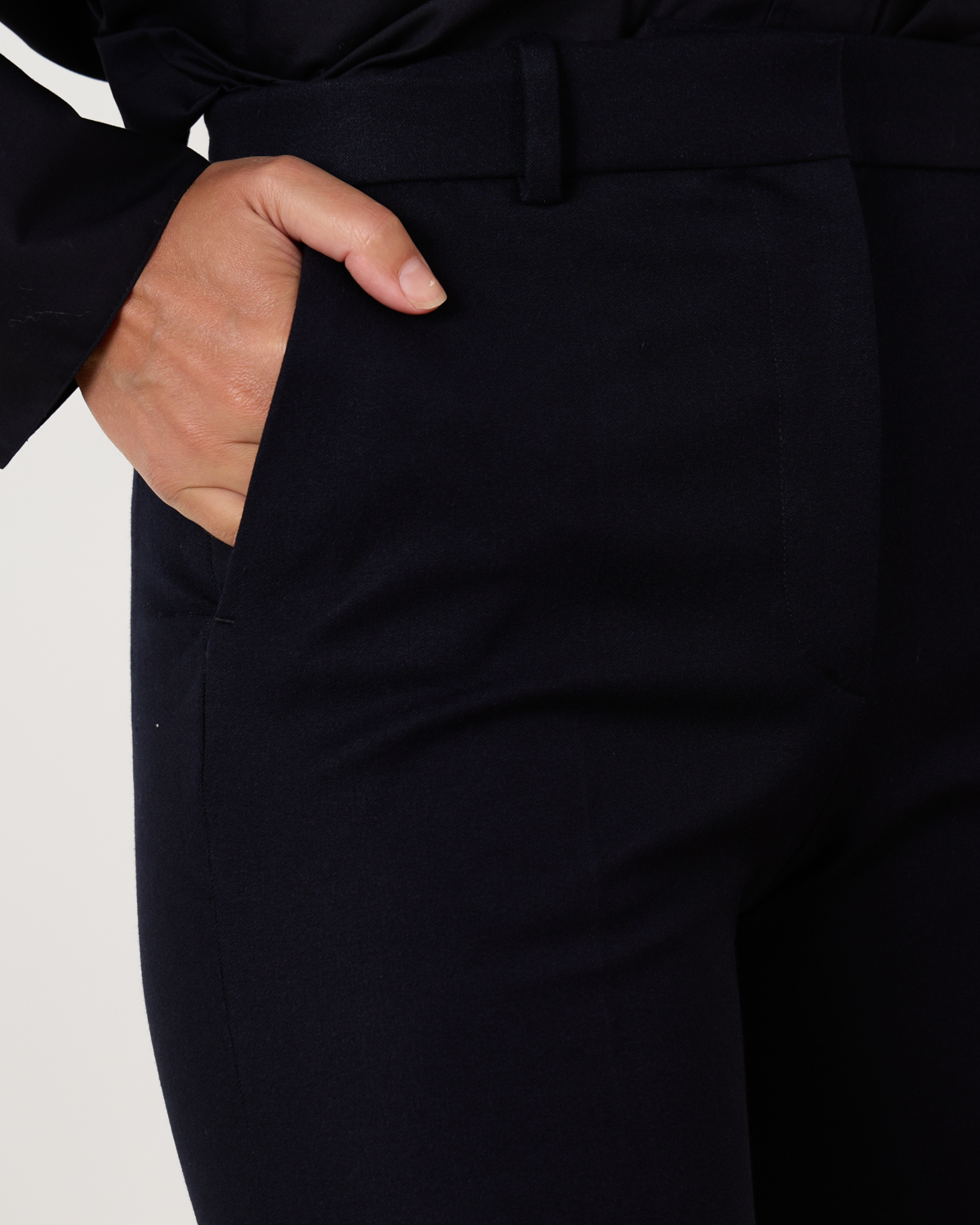 De Coleman trousers van Joseph komt in het zwart en is gemaakt van katoenmix. De mid-rise broek gemaakt van de een hoge kwaliteit stof. Verder is de broek voorzien van stretch, zijzakken, ritssluiting en haaksluiting. De persplooien in het midden verlengen het silhouet. Een onmisbare toevoeging aan elke garderobe, ideaal voor kantoor of avondkleding.