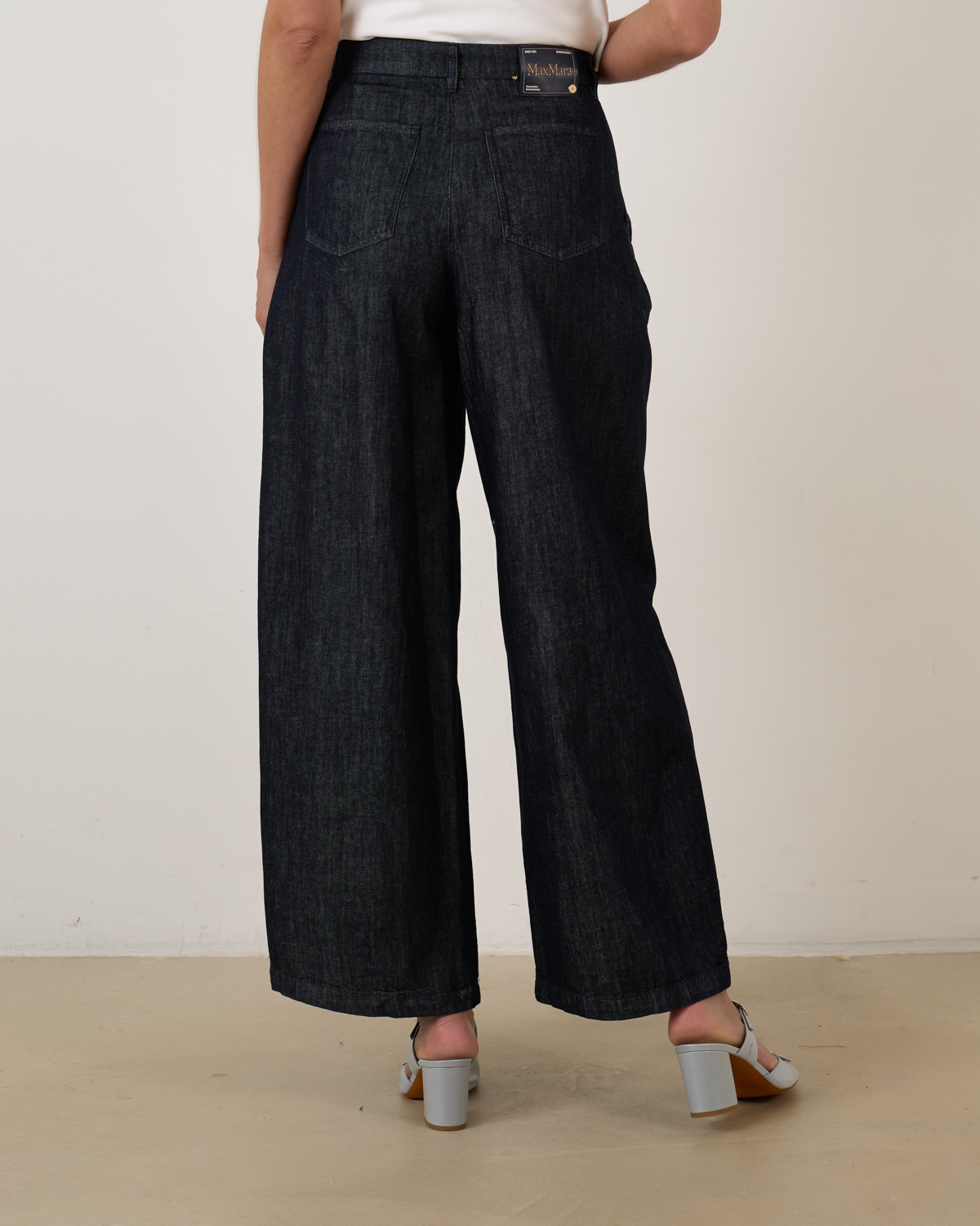 De Luis jeans van Max Mara is een moderne, wijde denim met een hoge taille en elegante plooien aan de voorzijde. Uitgevoerd in een diepe blauwe tint, combineert deze broek een flatterend silhouet met comfort. Gemaakt van stevige denim met biologisch katoen en kapok, afgewerkt met steekzakken, achterzakken en een subtiel merklabel.