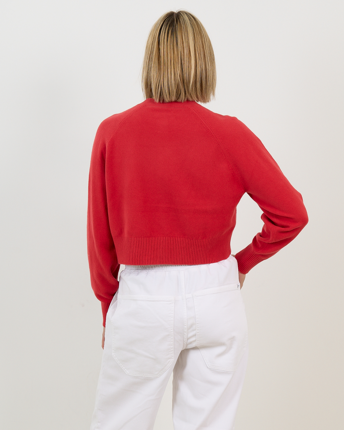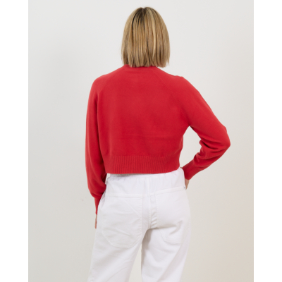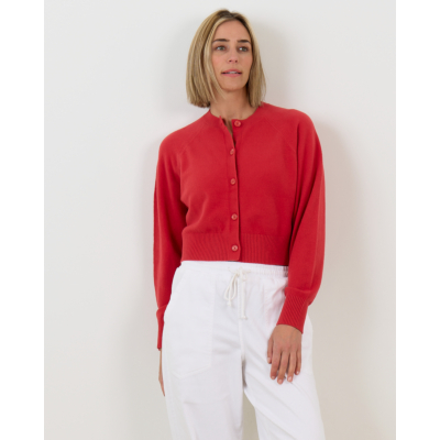 Dit opvallende rode vest valt op door zijn verkort model en elegante knoopsluiting. Het fijne gebreide materiaal van 58% katoen, 38% nylon en 4% elastaan zorgt voor een comfortabele draagervaring met net genoeg stretch. De regular fit pasvorm en ronde hals geven een moderne uitstraling, terwijl de geribbelde zoom en manchetten voor een verfijnde afwerking zorgen. De voorkant sluit met matchende knopen in dezelfde rode tint.