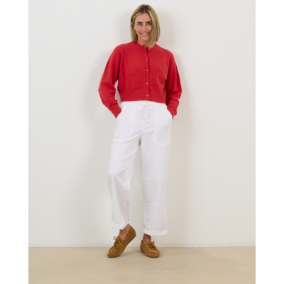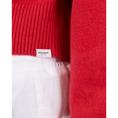 Dit rood gebreide cardigan vest van Penn&Ink combineert je perfect met een witte blouse en donkere pantalon voor een chique look. Draag het ook over een effen jurk voor extra warmte en kleuraccent, of combineer met jeans en sneakers voor een casual styling.