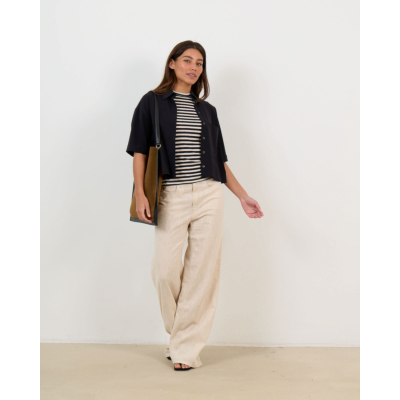 Het gestreepte linnenmix t-shirt van Penn&Ink combineer je stijlvol met een linnen blazer en wijde pantalon voor een complete look. Draag het ook onder een vest of cardigan, of kies voor een casual outfit met een denim rok of jeans.
