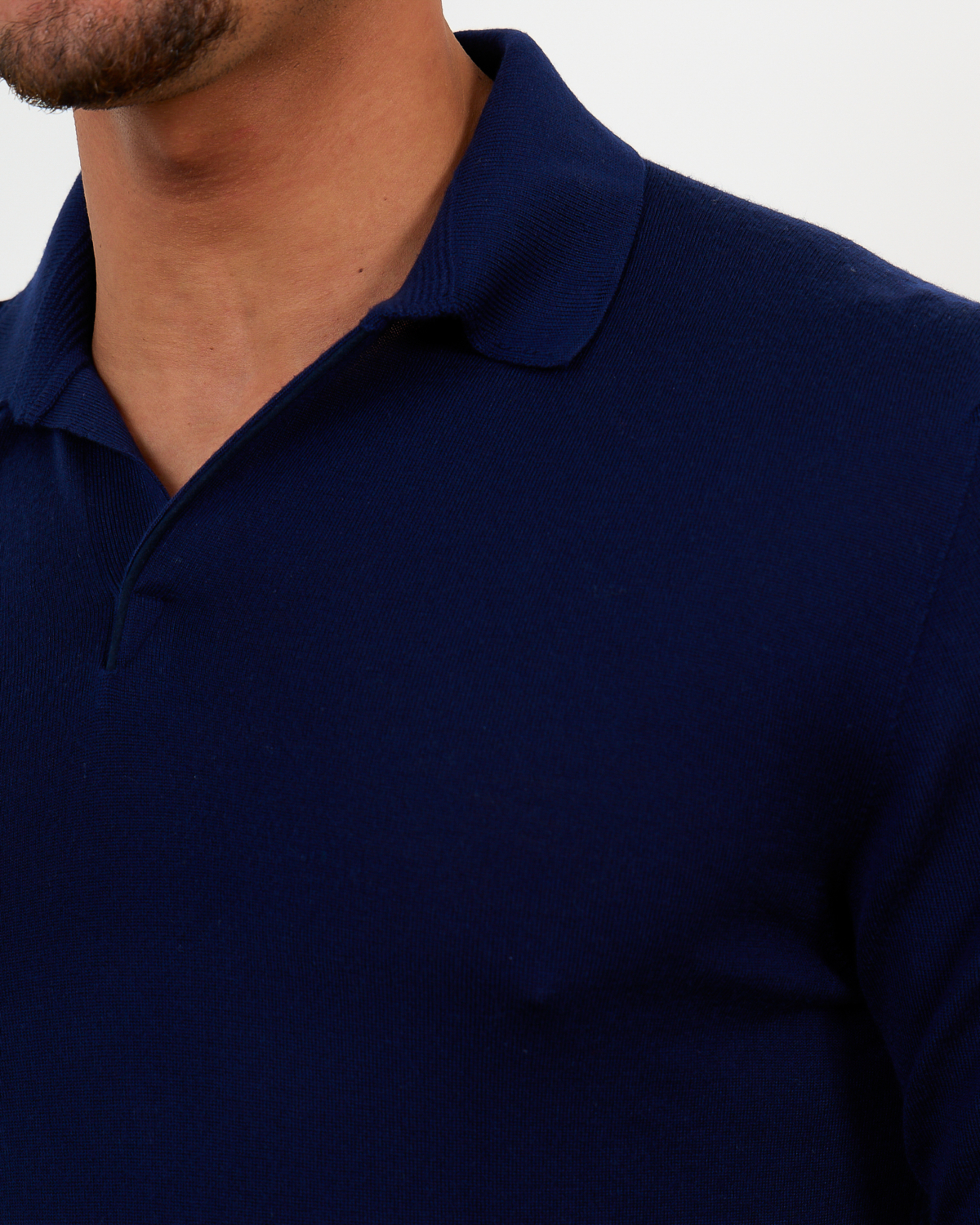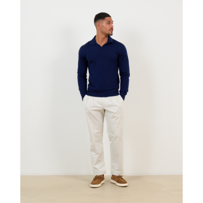 Deze marineblauwe poloshirt van Sease combineert klassieke elegantie met moderne verfijning. De 100% wollen constructie zorgt voor superieur draagcomfort en natuurlijke temperatuurregulatie. De polokraag en subtiele knoopsluiting geven het ontwerp een tijdloze uitstraling, terwijl de lange mouwen en regular fit zorgen voor een gebalanceerde silhouet. Het fijne wolmateriaal voelt zacht aan en behoudt zijn vorm uitstekend.