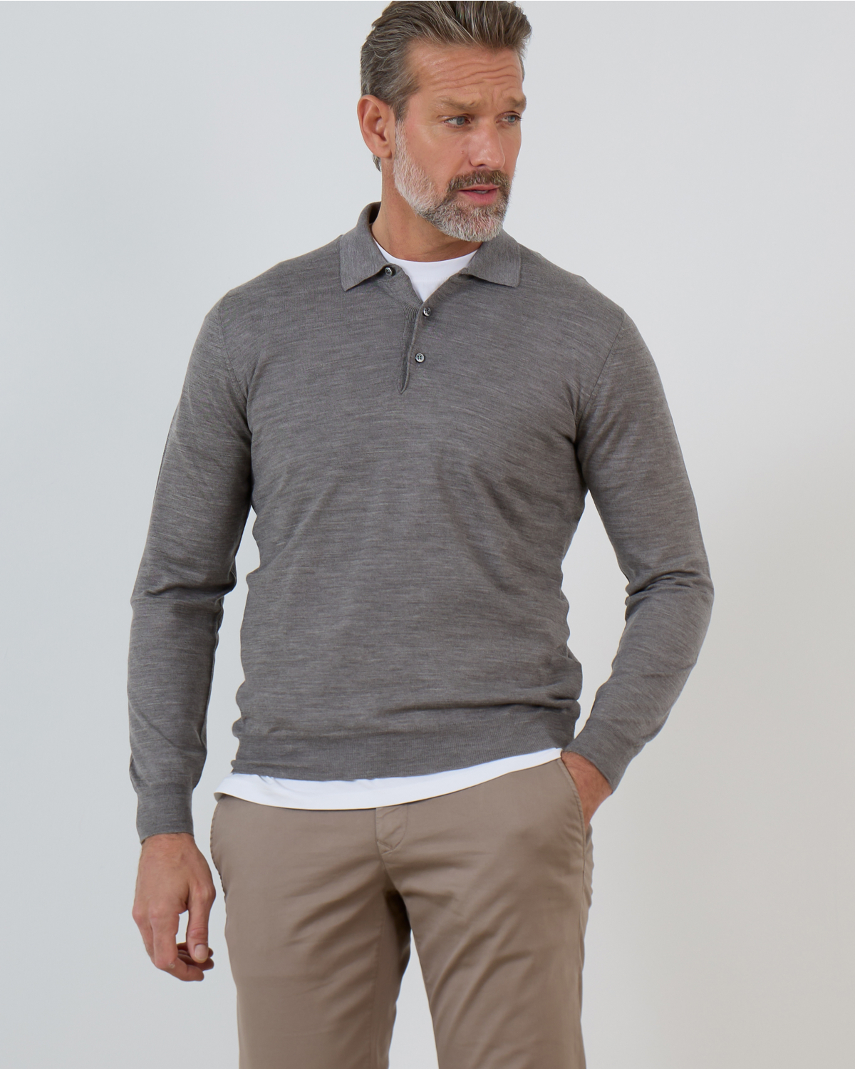 Deze verfijnde grijze polo pullover van Fedeli combineert klassieke elegantie met modern comfort. Vervaardigd uit 100% wol biedt dit herenkledingstuk een luxueuze uitstraling en optimale warmte. De lange mouwen en subtiele grijze kleur zorgen voor een tijdloze verschijning. De klassieke polokraag en knoopsluiting geven het kledingstuk zijn kenmerkende sportieve uitstraling, terwijl de pullover snit zorgt voor een comfortabele pasvorm.