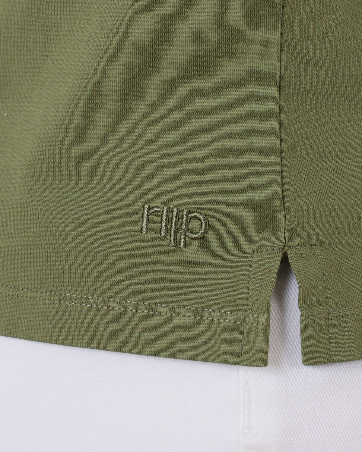 Combineer het olijfgroene T-shirt van Rijp met een donkerblauwe chino en witte sneakers voor een relaxte look. Draag het onder een lichtgrijze cardigan met jeans voor een casual-chique uitstraling. Voor warme dagen kun je het T-shirt combineren met beige shorts en loafers.
