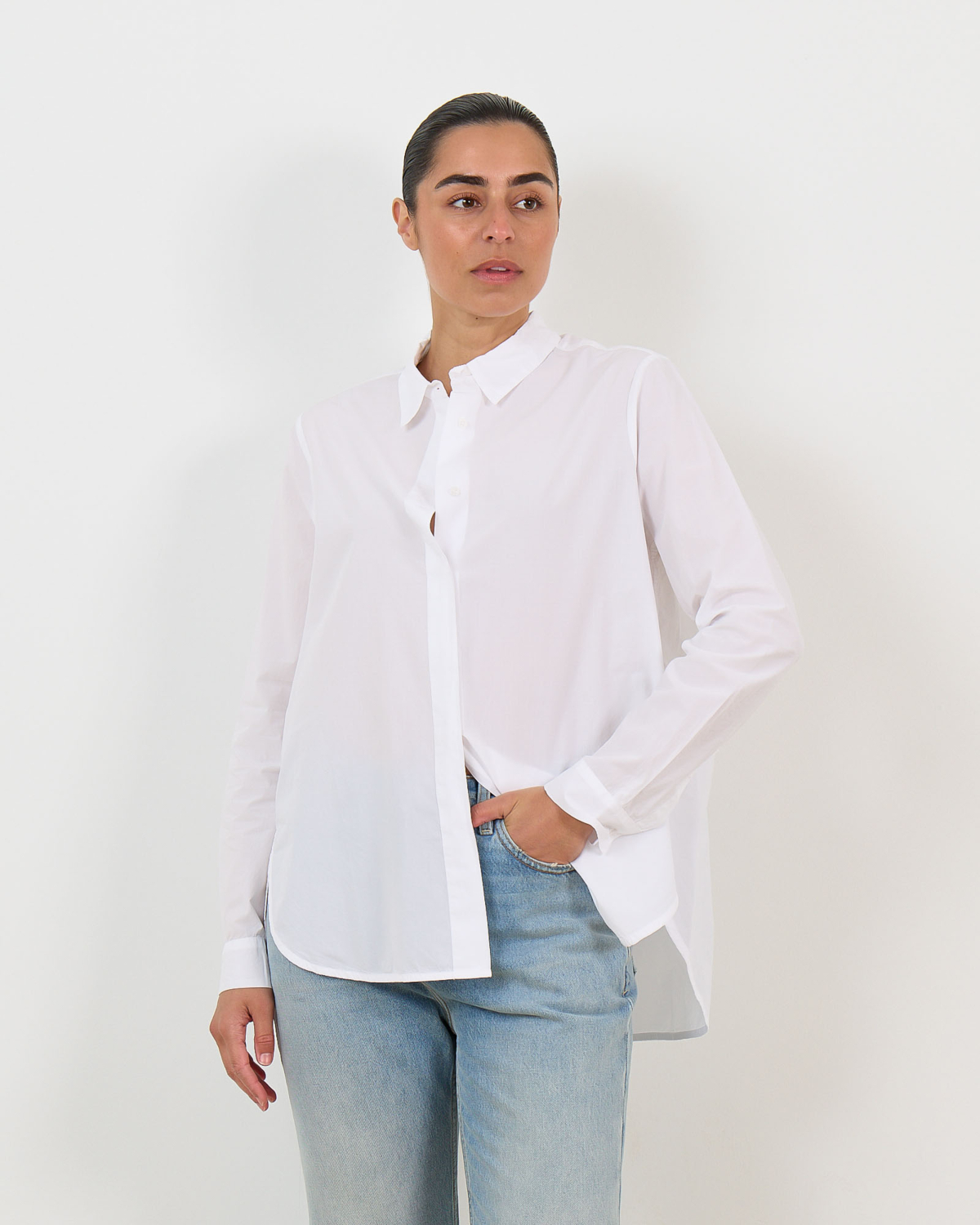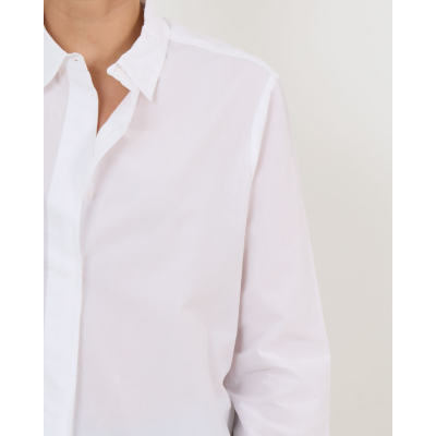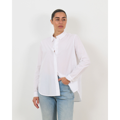 Deze elegante witte blouse van 100% katoen biedt je comfort en verfijnde stijl in één. De relaxed fit en lange mouwen zorgen voor een ontspannen silhouet, terwijl de klassieke kraag en verborgen knopenrij een strakke, minimalistische uitstraling creëren. Het katoen voelt zacht aan en ademt natuurlijk, perfect voor dagelijks comfort.