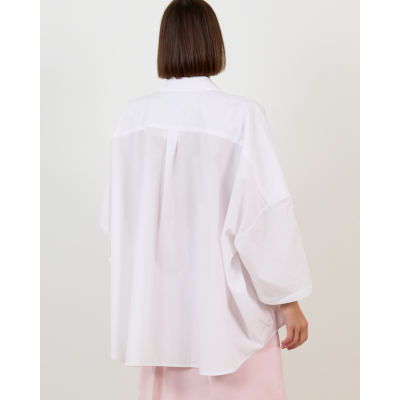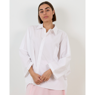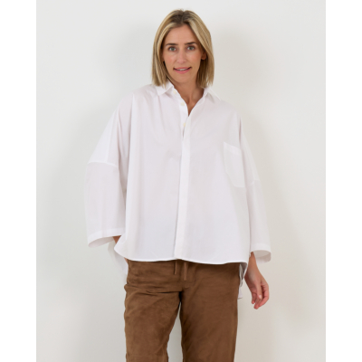 Deze oversized witte blouse combineert elegantie met een moderne twist. Vervaardigd uit 100% katoen biedt het kledingstuk optimaal draagcomfort en ademend vermogen. De klassieke kraag en knoopsluiting geven een tijdloze uitstraling, terwijl de ruime pasvorm zorgt voor een eigentijdse look. De lange mouwen en strakke witte kleur maken van deze blouse een veelzijdig item.