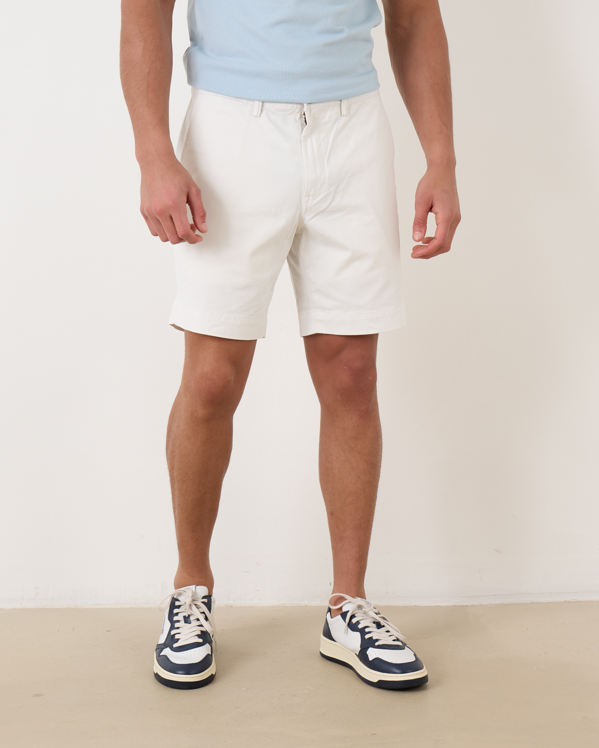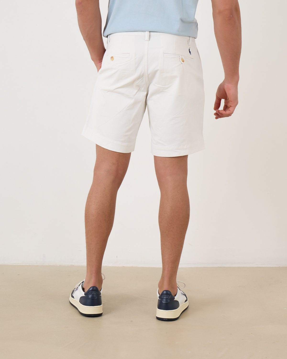 De Stretch straight fit shorts van Ralph Lauren komt in de kleur deckwash white. De short heeft twee steekzakken, een knoop en rits sluiting aan de voorzijde en twee paspelzakken aan de achterzijde.