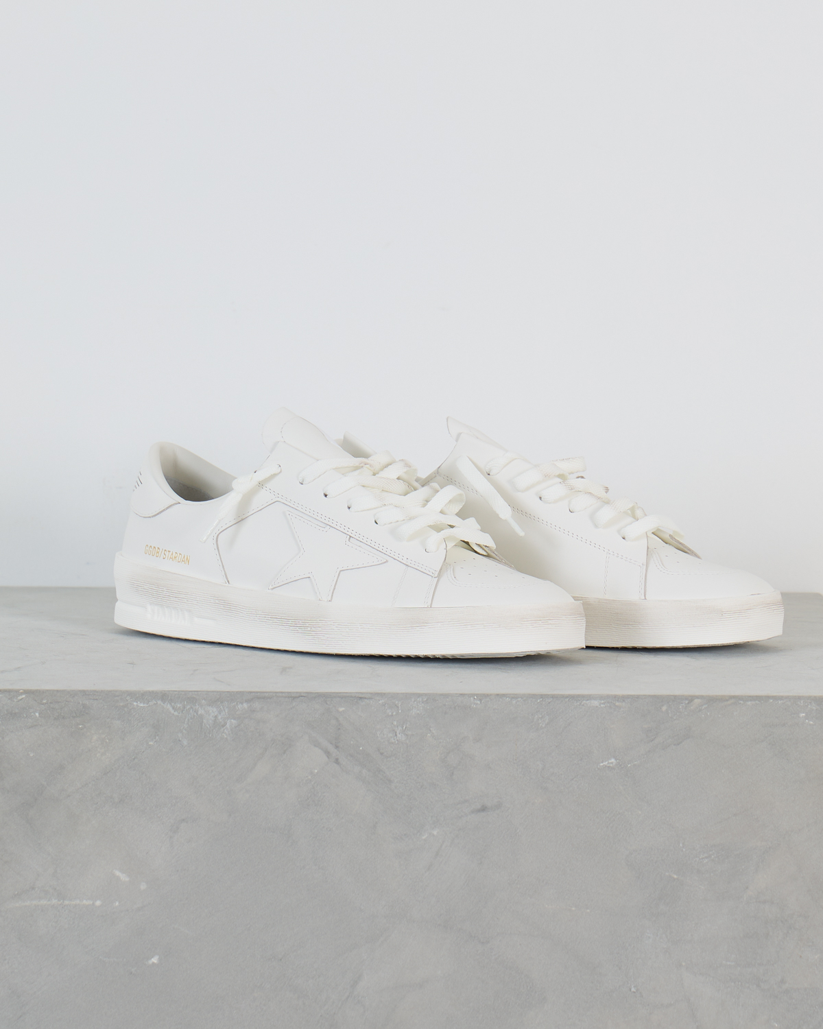 Deze elegante witte sneaker van Golden Goose combineert verfijnd leer met het iconische sterontwerp aan de zijkant. De Stardan Sneaker Optic White beschikt over klassieke vetersluiting en de kenmerkende GGDB/Stardan tekst op de hielstrip. Het premium leer voelt soepel aan en de witte kleurstelling straalt tijdloze elegantie uit. De gestructureerde rubberen zool biedt comfort en grip.