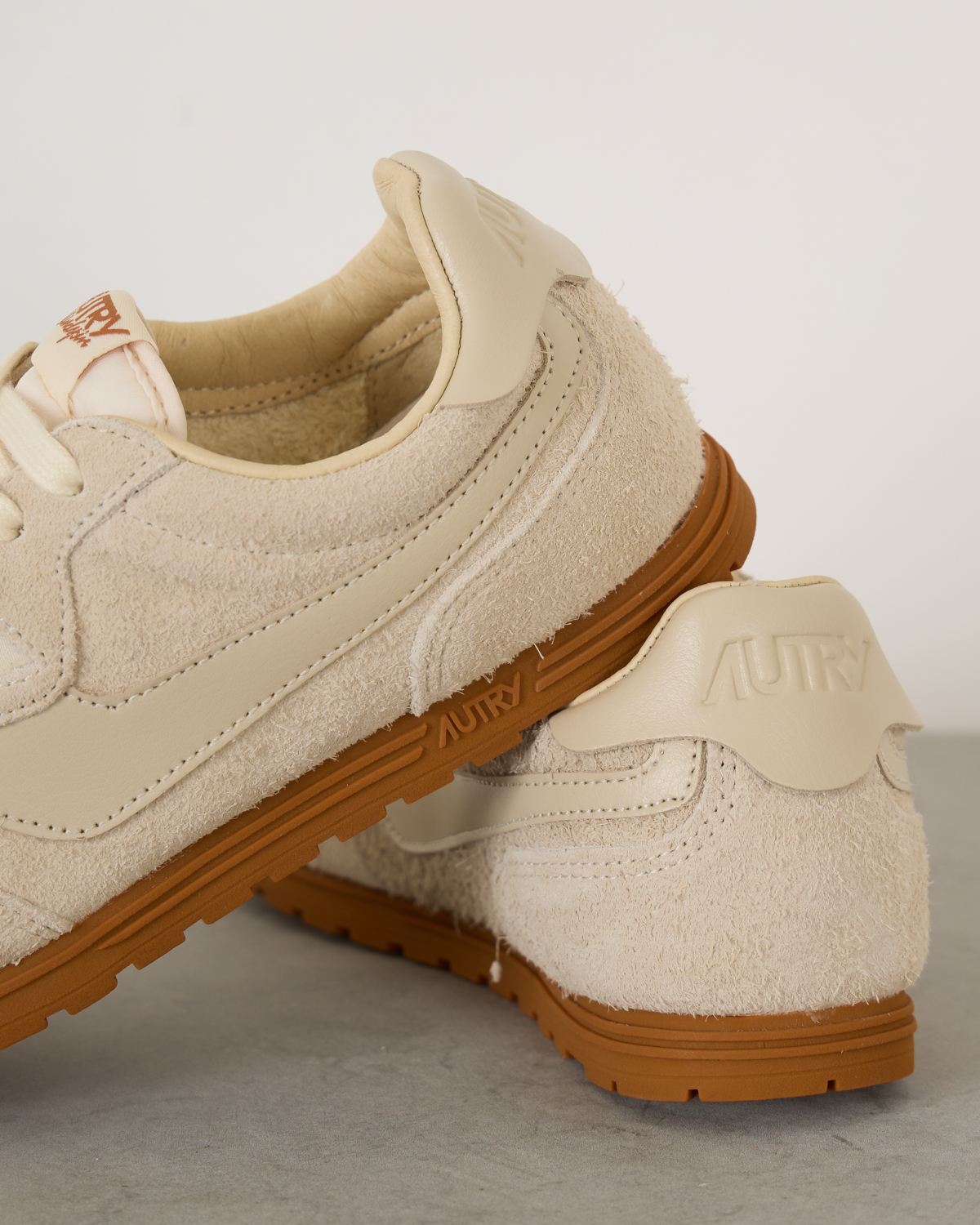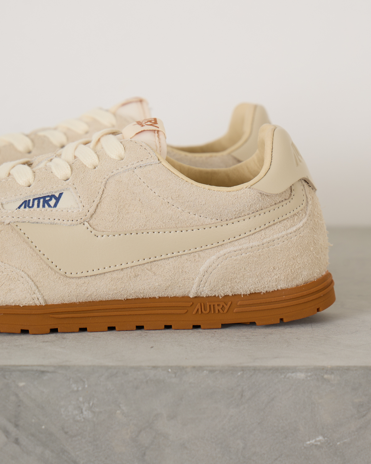 De Windspin is de nieuwe kenmerkende sneaker van Autry die moeiteloos de Amerikaanse jaren 60‑retrostijl combineert met verfijnde Italiaanse flair. Deze lage sneaker is uitgevoerd in zacht suède met used‑effect. De sneaker komt in de kleur Biscuit.