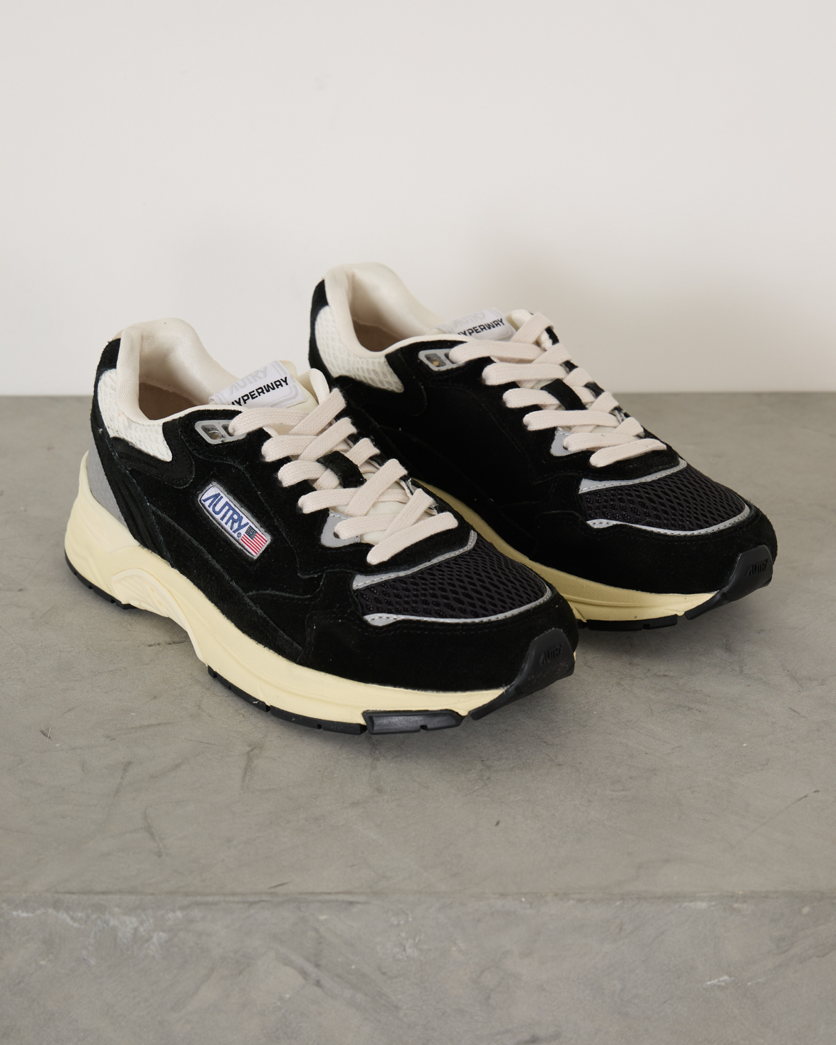 De Hyperway is Autry’s futuristische sneaker die de iconische '90s dad-sneaker look combineert met moderne technologie en een eigentijdse urban uitstraling. Het ontwerp valt op door het gebruik van lichte mesh, gelamineerd metallic leer en soepel geitenleer – een mix van hoogwaardige materialen die sportieve elegantie en premium kwaliteit uitstraalt. De variatie in texturen en kleuren geeft de sneaker een dynamisch en gelaagd karakter.
