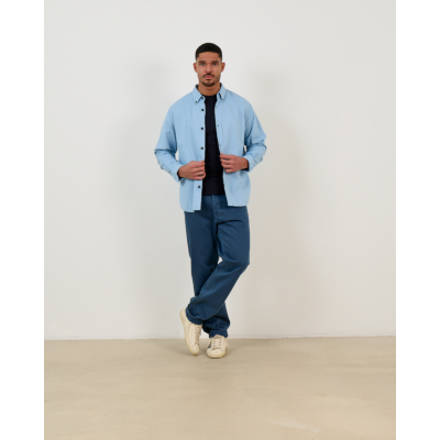 Draag dit blauwe overhemd met een donkere pantalon voor een zakelijke look, of combineer met een casual broek en sneakers voor een ontspannen weekend outfit.