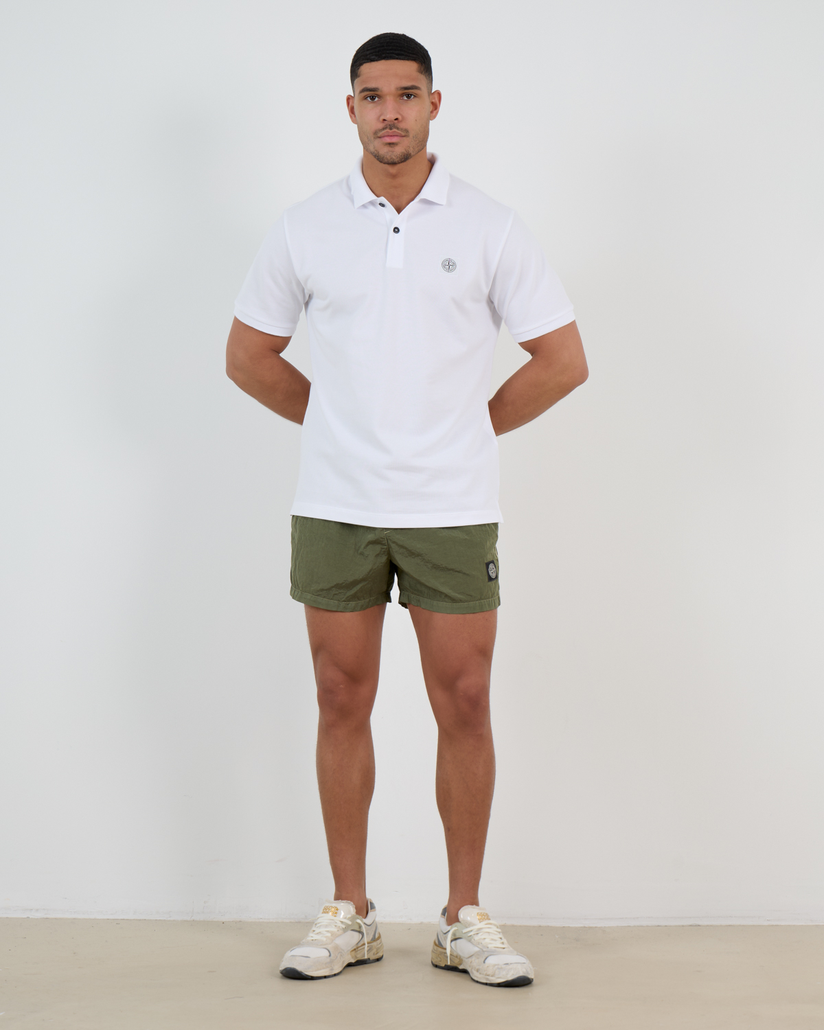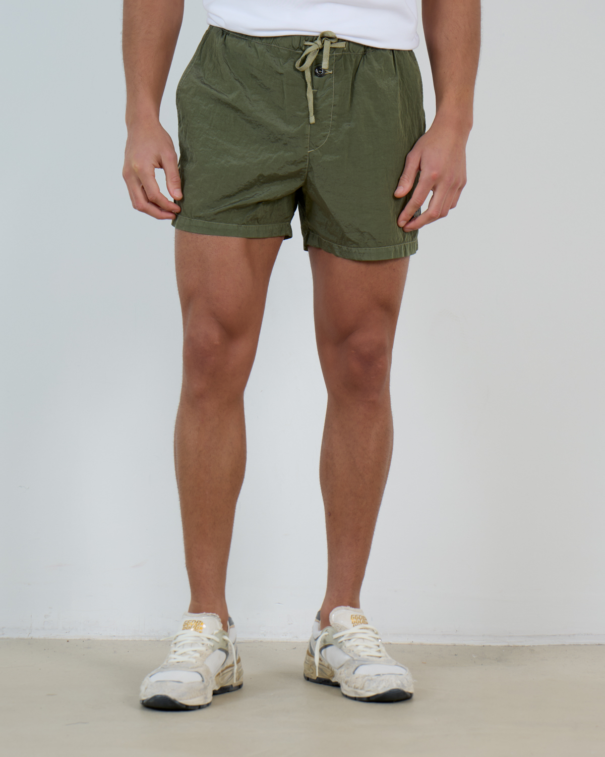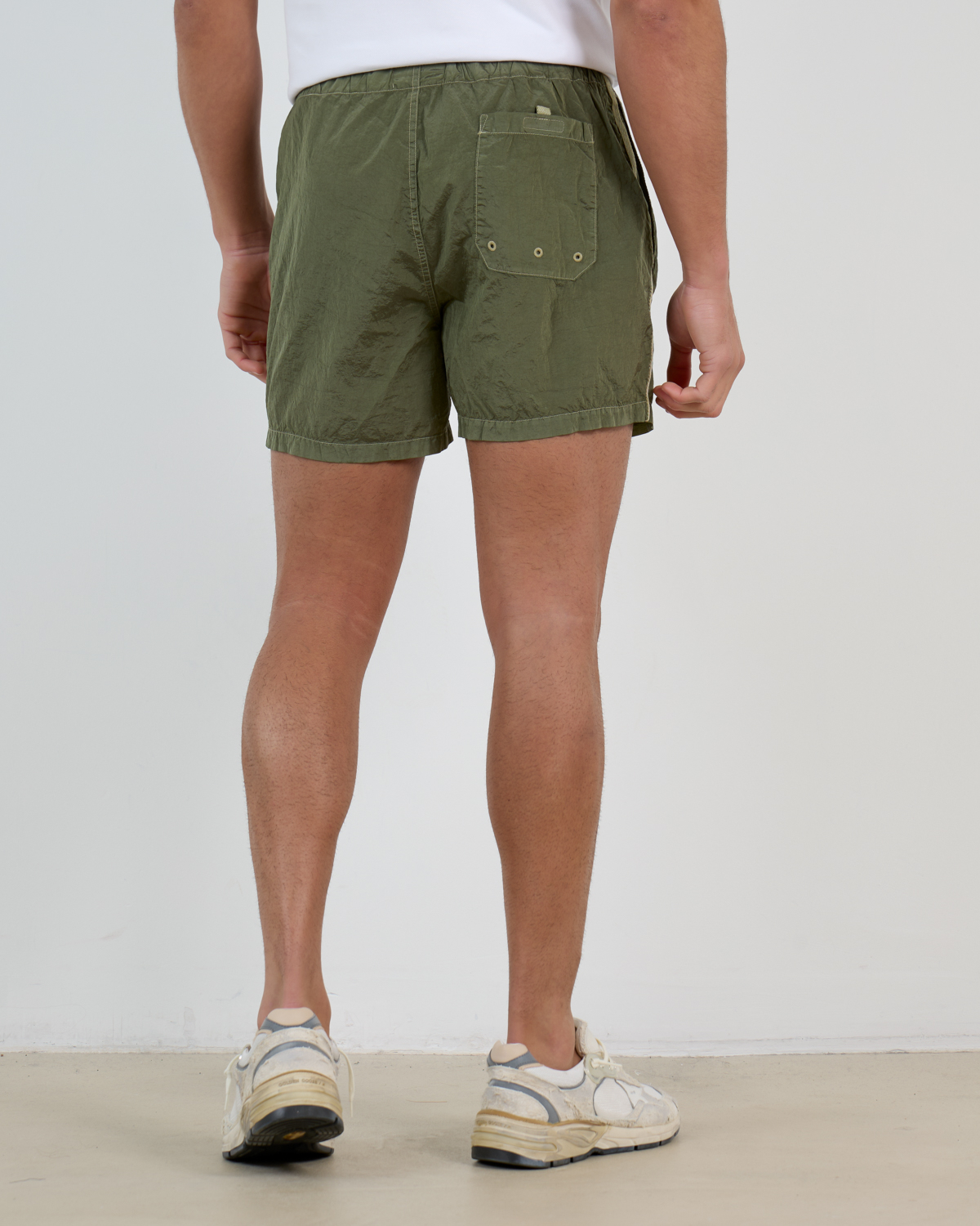 Draag deze zwemshort met een wit overhemd of polo voor een klassieke zomerlook, of combineer met een linnen shirt voor een ontspannen strandstijl. De neutrale groene kleur past uitstekend bij witte sneakers of espadrilles.