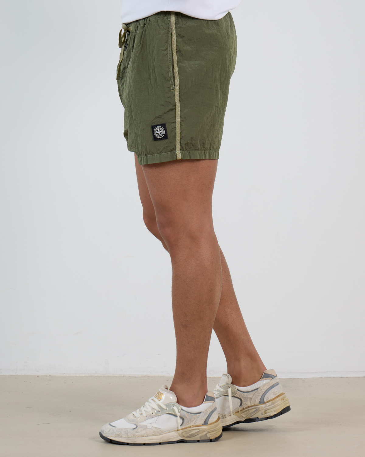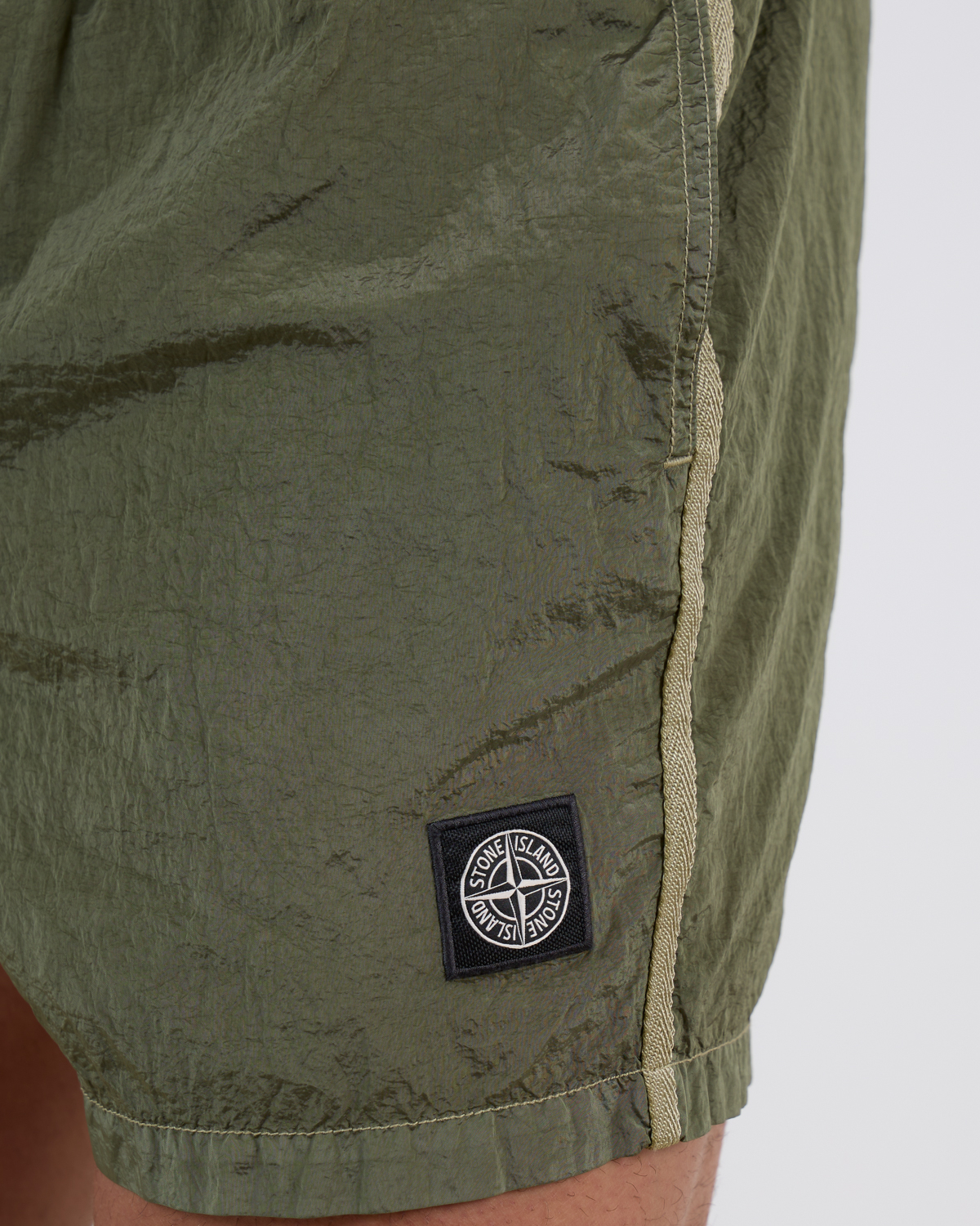 Deze groene zwemshort van Stone Island combineert sportieve functionaliteit met verfijnd design. Het 100% polyamide materiaal droogt snel en voelt comfortabel aan op de huid. De slim fit pasvorm zorgt voor een moderne uitstraling, terwijl het trekkoord in de tailleband perfecte pasvorm garandeert. Opvallende details zijn de contrasterende tape langs de zijkant en het kenmerkende Stone Island kompas logo op het linkerbeen. De achterzak heeft een klittenbandsluiting voor veilige opslag.
