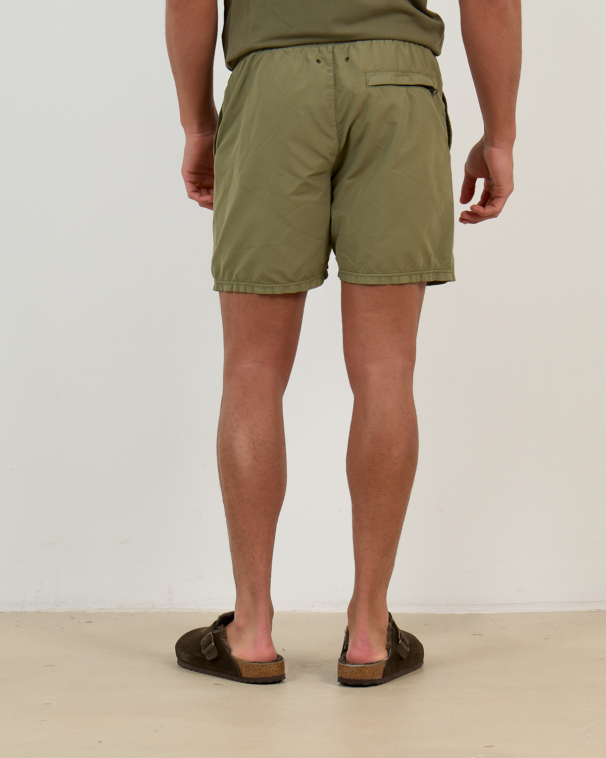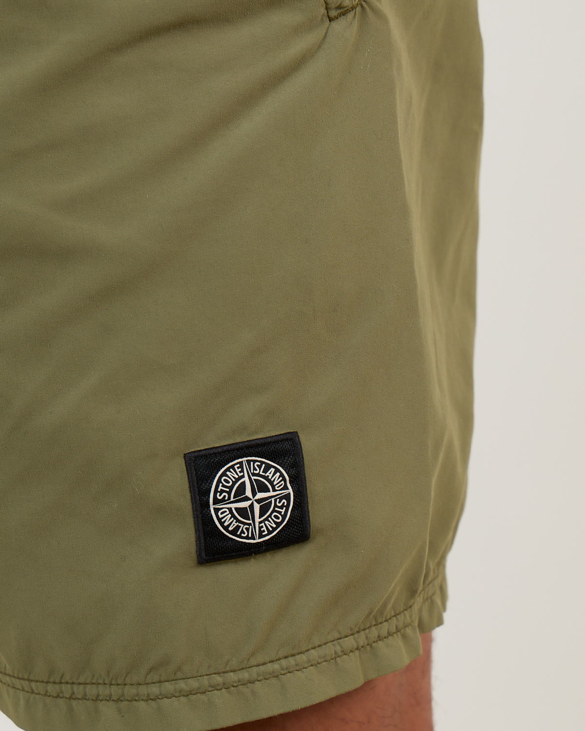 Deze groene zwemshort van Stone Island combineert vakmanschap met modern comfort. Het polyamide materiaal droogt snel en voelt licht aan, terwijl de relaxed-fit zorgt voor optimale bewegingsvrijheid. Het iconische kompaslogo op het been benadrukt de herkenbare merkidentiteit. De elastische tailleband met trekkoord biedt een perfecte pasvorm. Aan de achterzijde vind je een praktische rits zak voor je waardevolle spullen.