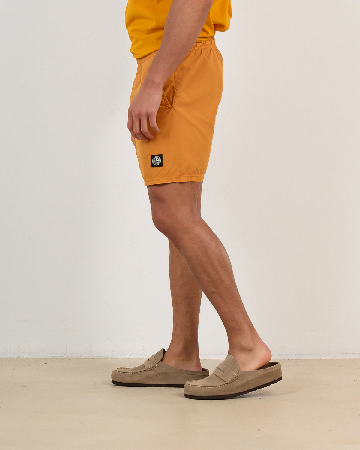 Deze oranje zwemshort van Stone Island brengt Italiaanse stijl naar je zwemgarderobe. Het 100% polyamide materiaal droogt snel en voelt comfortabel aan tijdens actieve dagen. De regular fit pasvorm geeft vrijheid van beweging, terwijl de elastische tailleband zorgt voor een perfecte zit. Het iconische kompaslogo op het been bevestigt de authentieke kwaliteit van deze heren zwemkleding. De zakken aan voor- en achterzijde bieden praktische bergruimte voor essentials.