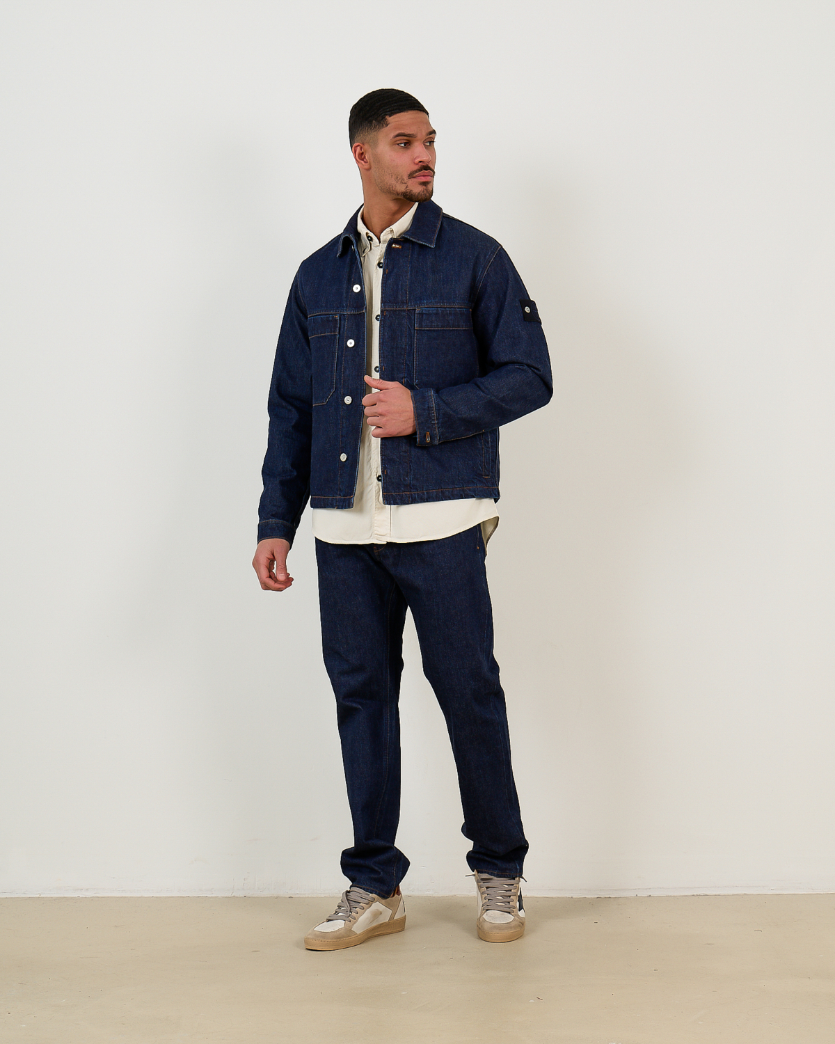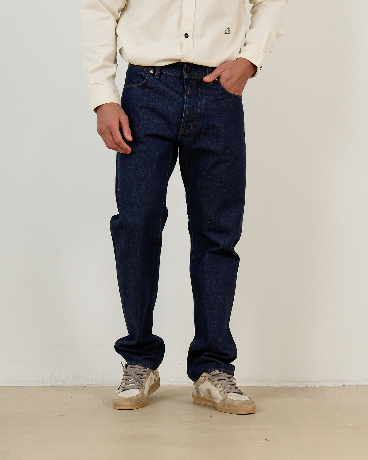 Deze straight fit jeans in donkerblauwe denim combineert klassieke vorm met moderne verfijning. Het 100% katoen voelt stevig en comfortabel aan, terwijl de regular straight pasvorm zorgt voor een tijdloze silhouet. De vijf-zakken constructie met metalen rivetten en contrasterende siernaden geeft dit Stone Island item zijn authentieke denimkarakter. De knoopsluiting en klassieke taillehoogte maken de jeans veelzijdig en draagbaar.