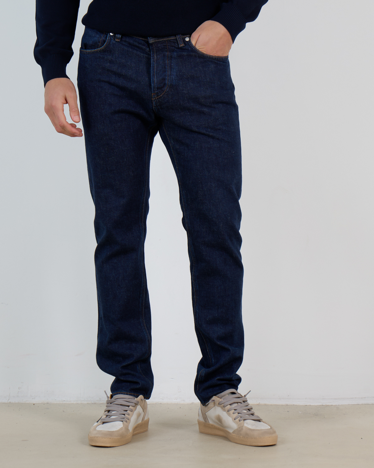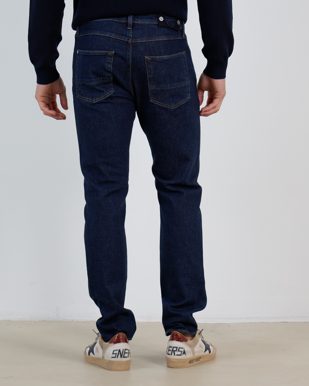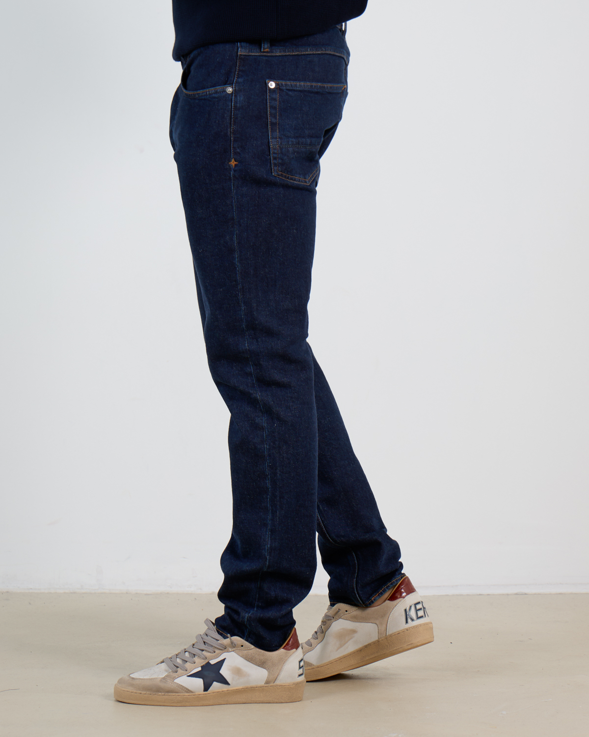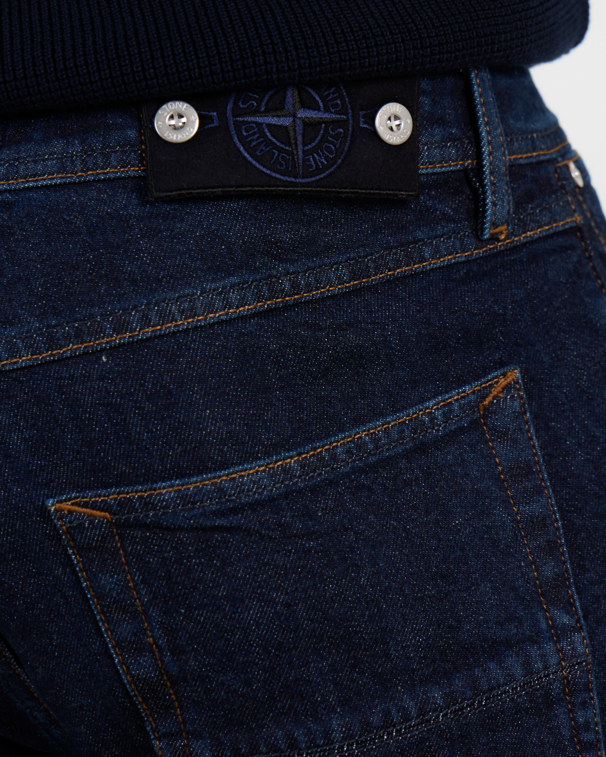 Deze slanke jeans in diepe blue rinse wassing combineert verfijnde stijl met optimaal comfort. Het katoenmix materiaal van 98% katoen en 2% elastane biedt flexibiliteit bij elke beweging, terwijl de slim fit pasvorm een strakke silhouet creëert. De klassieke vijfzakken indeling en koperkleurige stiksels geven dit Stone Island model een authentieke denimuitstraling.