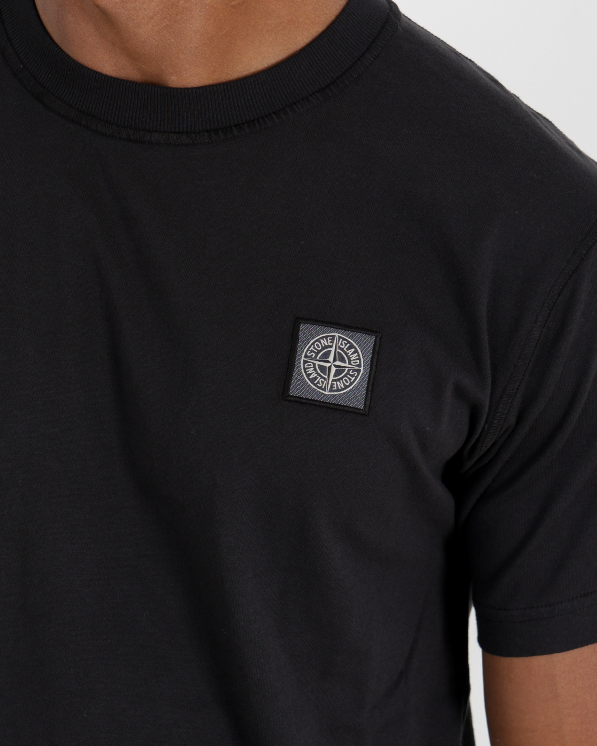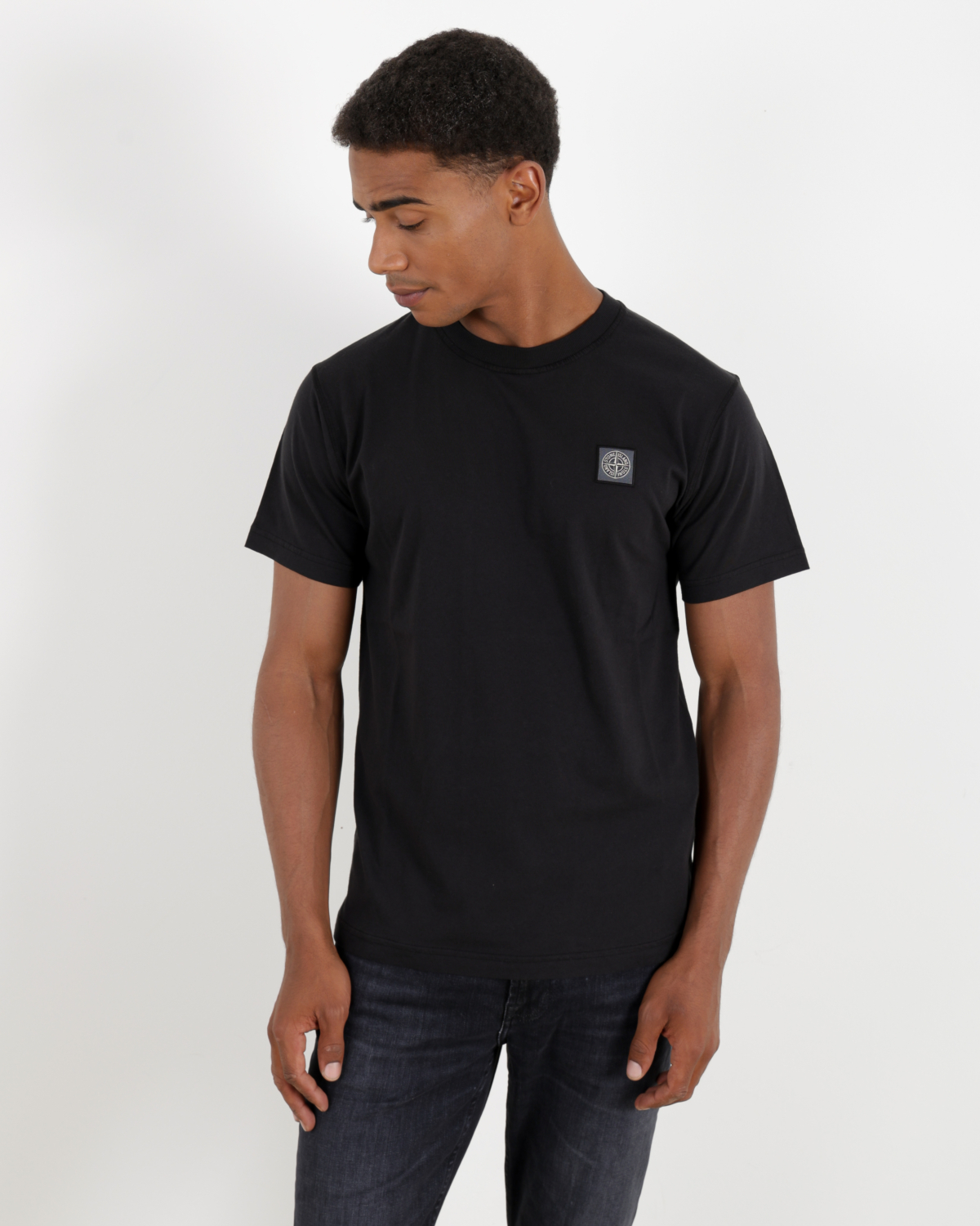 T-shirt van het merk Stone Island in de kleur zwart V0029. Het shirt heeft een ronde hals, korte mouwen en een klein logo patch op de linkerborst.