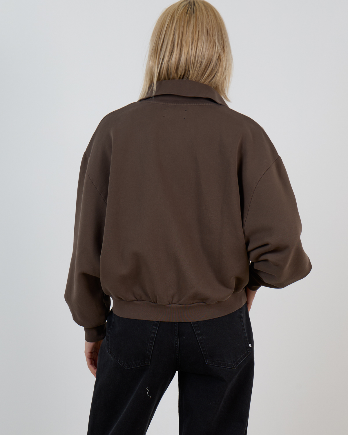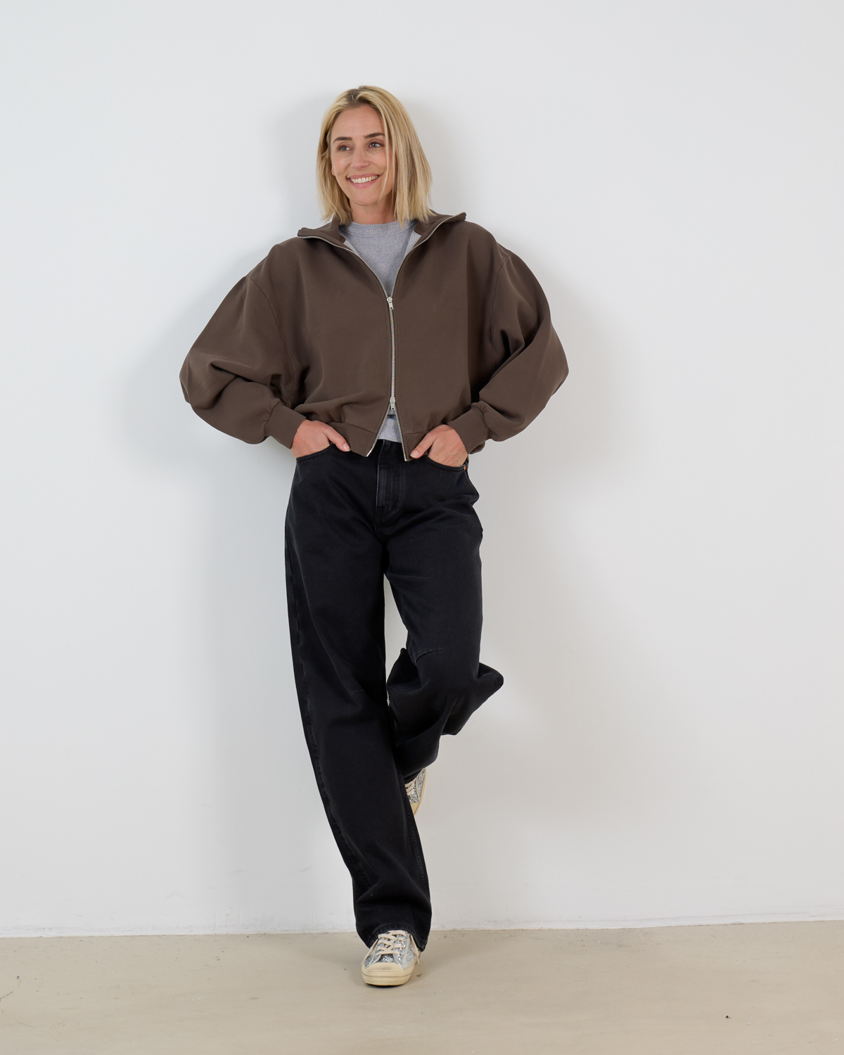 Deze stijlvolle bruine cardigan vest met rits combineert comfort en moderne elegantie. Het vest in donkerbruine kleur valt op door de oversized pasvorm en zachte katoen-polyester mix (80% katoen, 20% polyester). De regular fit zorgt voor een flattering silhouet, terwijl de lange mouwen en opstaande kraag een eigentijdse twist geven. De doorlopende rits aan de voorkant maakt het vest veelzijdig en praktisch in gebruik.