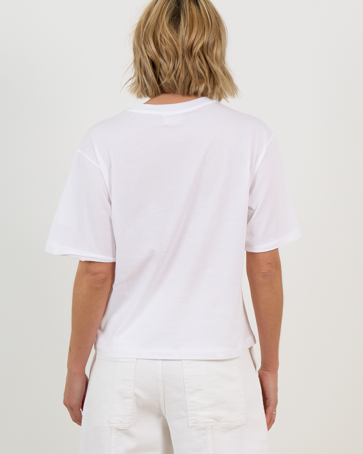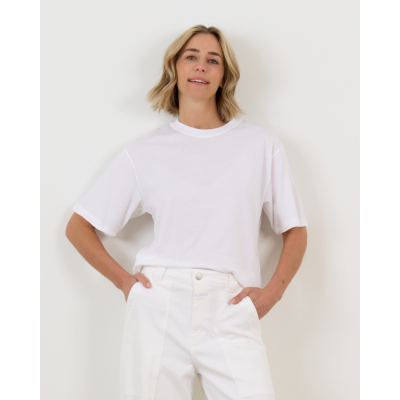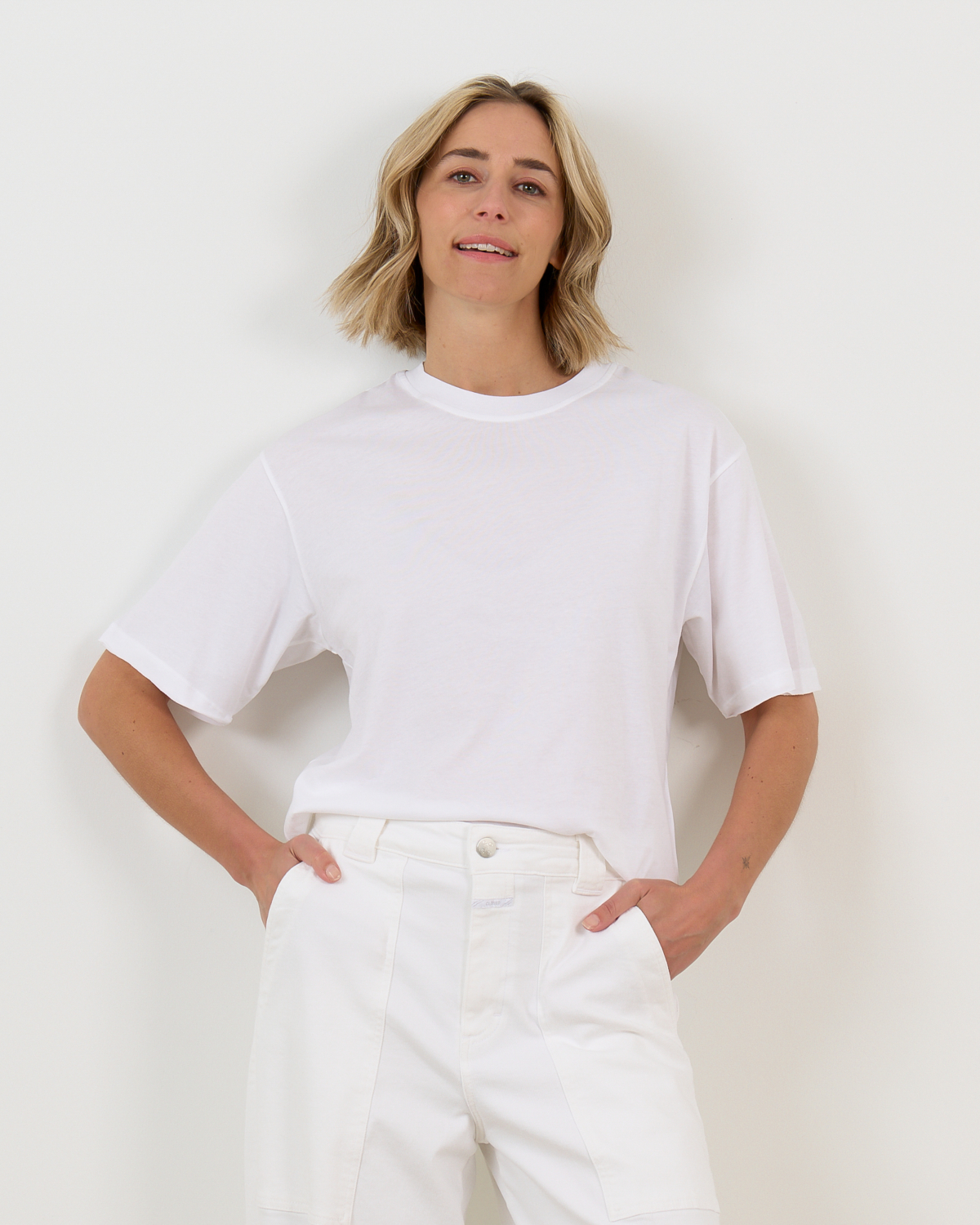 Dit witte shirt met korte mouwen straalt moderne elegantie uit. De ronde hals en relaxed fit zorgen voor een comfortabele draagervaring, terwijl het 100% biologisch katoen aangenaam aanvoelt op de huid. Het discrete CLOSED label aan de zijkant geeft dit basic item een verfijnde touch. De wit tint past bij elke gelegenheid en de korte mouwen maken het perfect voor de warmere dagen.
