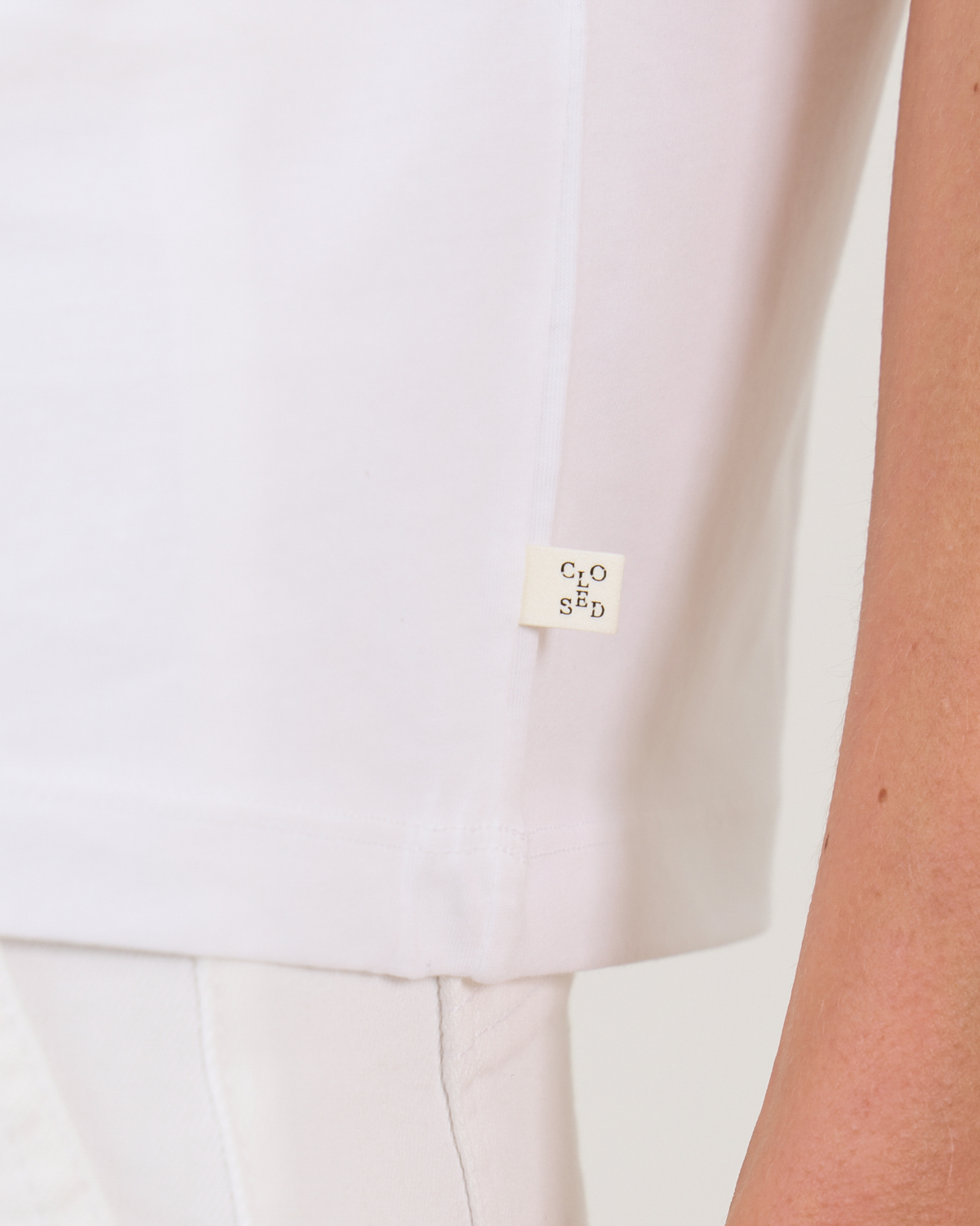 Dit witte shirt van CLOSED combineer je prachtig met een getailleerde blazer voor een zakelijke look. Draag het bij een hoge taille jeans en statement oorbellen voor een casual chique outfit, of tuck het in een plissé rok met sneakers voor een speelse twist.