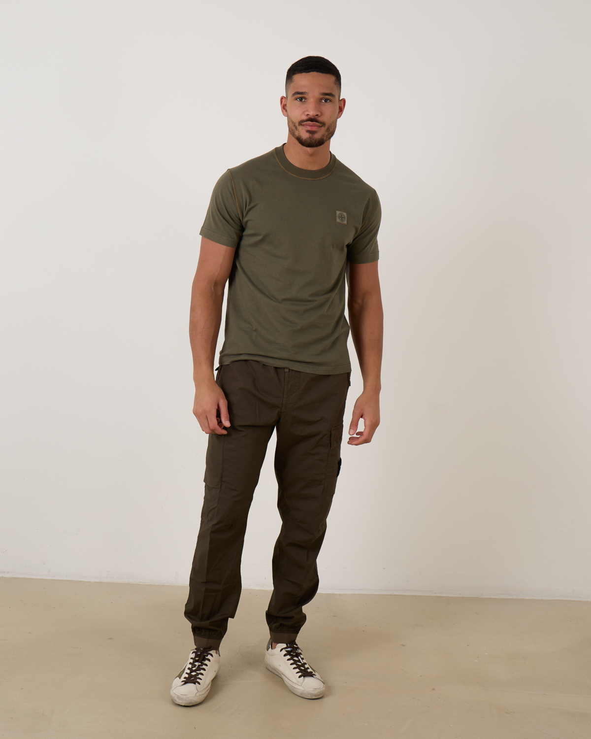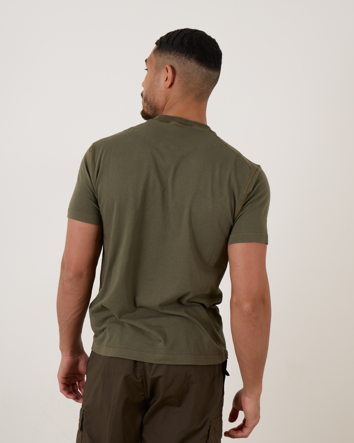 T-shirt met korte mouwen van Stone Island in de kleur v0154 Military green. Gemaakt van katoen. Het regulair fit model heeft een met ribgebreide ronde halslijn en een Stone Island Compass patch logo op de borst.