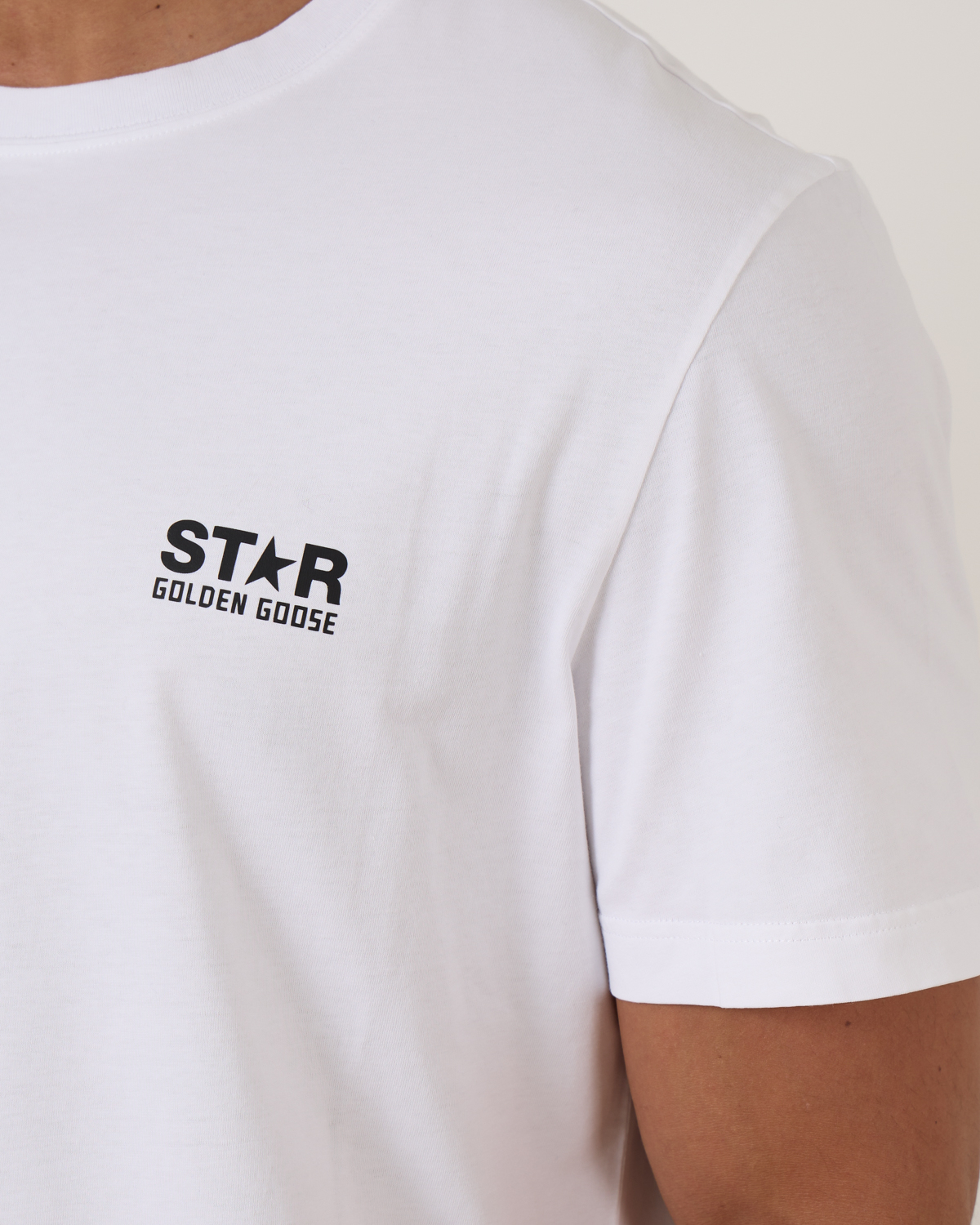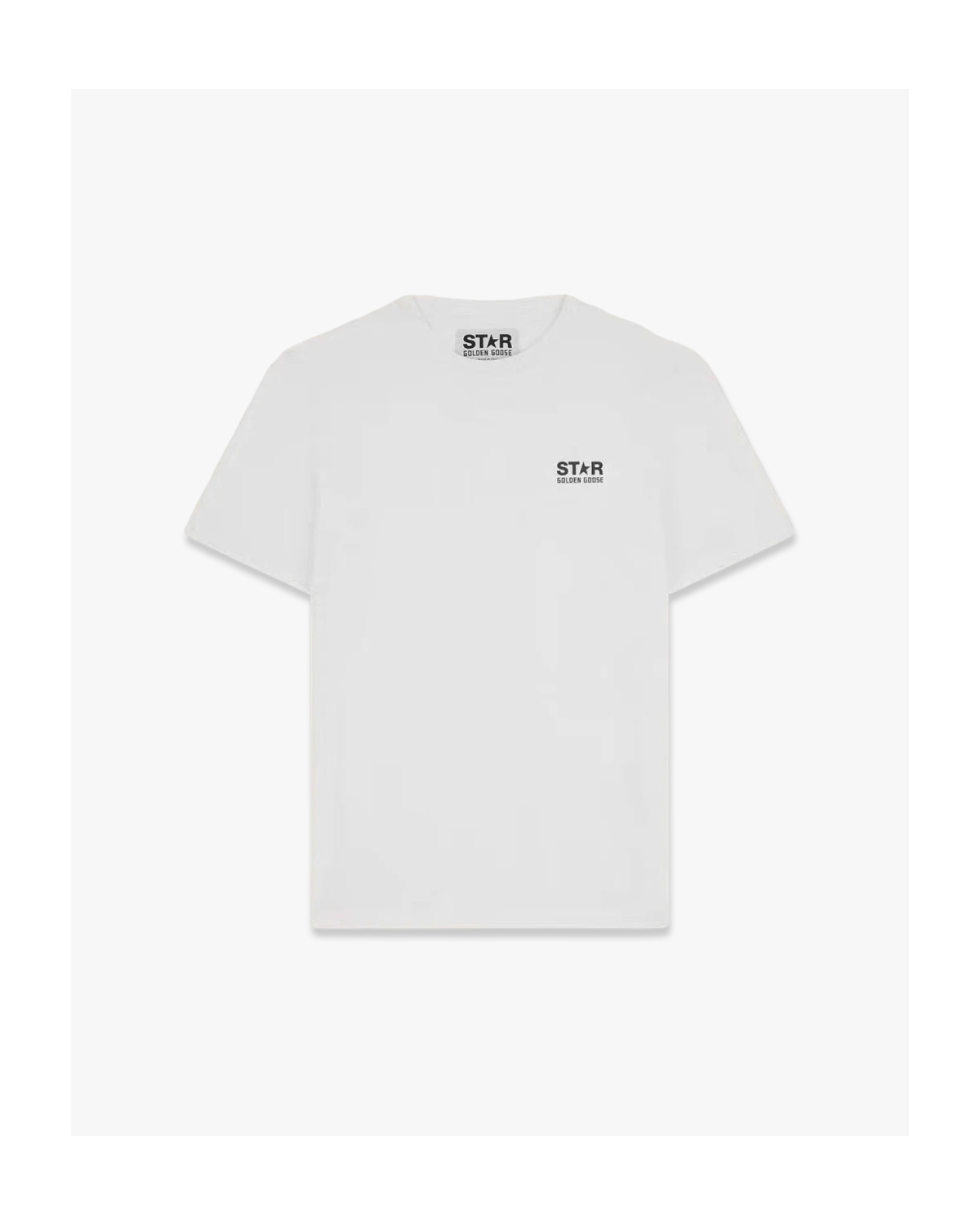 Een tijdloos, Italiaans T‑shirt van Golde Goose. dit t-shirt met seventies-inspiratie en casual allure is gemaakt van zachte, zuivere witte katoen in een regular-fit en heeft een klassieke ronde hals. Op de borst prijkt een subtiel “Star” logo in zwart, terwijl de achterkant wordt gedomineerd door een opvallende zwarte ster, een opvallend statement met karakter