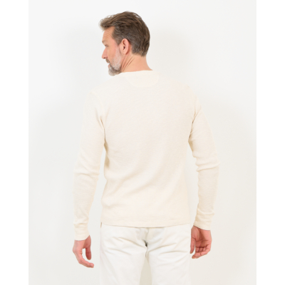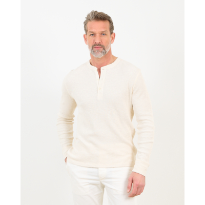 Combineer deze witte longsleeve met een donkere chino en leren sneakers voor een casual look, of draag hem onder een blazer met een pantalon voor een meer verzorgde stijl. Ook perfect te layeren onder een overshirt of vest voor extra dimensie in je outfit.