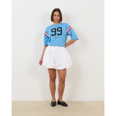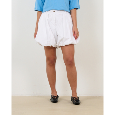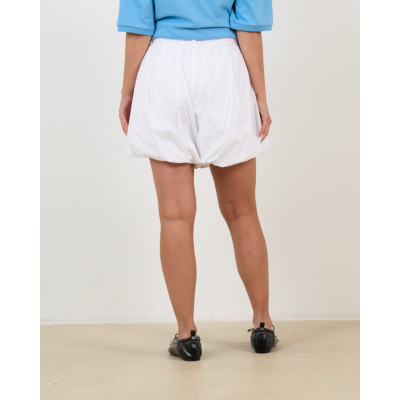 Deze witte short van 100% katoen straalt frisse elegantie uit. De poplin kwaliteit zorgt voor een luxueuze textuur en duurzaam draagcomfort. Met een regular fit pasvorm valt deze short comfortabel en flatterend. De opvallende ballonvorm creëert een speelse silhouet, terwijl de praktische steekzakken functionaliteit toevoegen. De sluiting met knoop en rits biedt een stijlvolle afwerking.