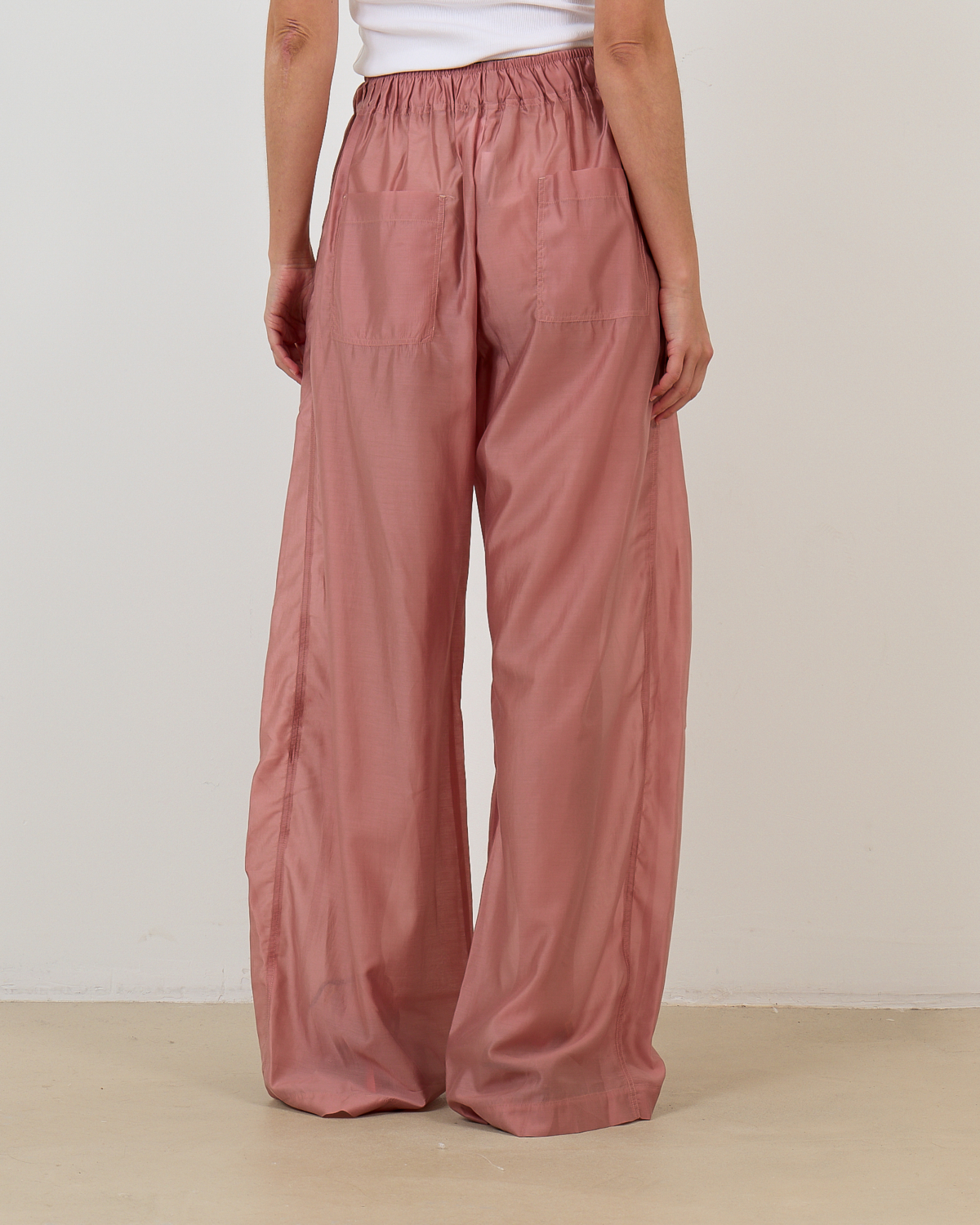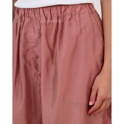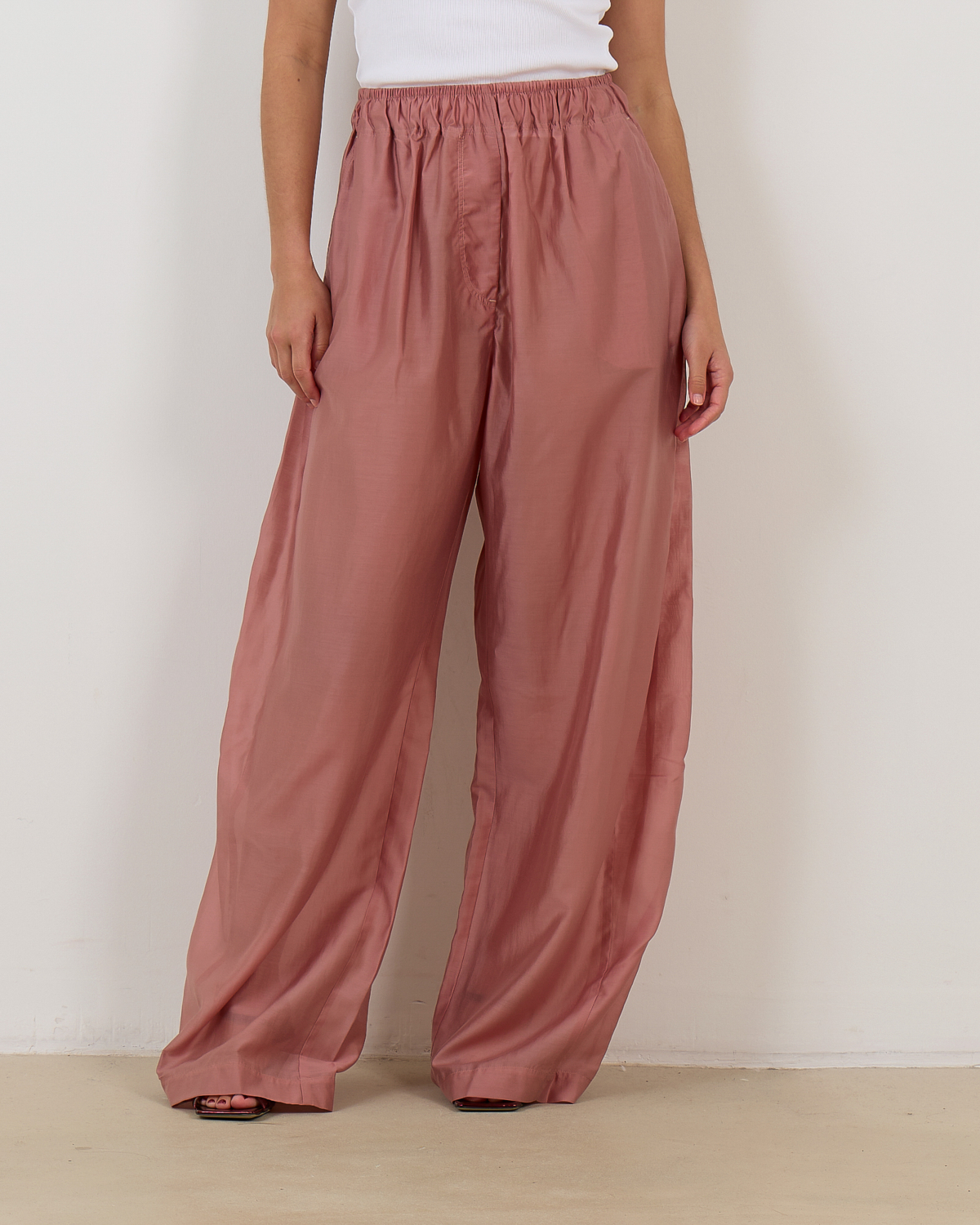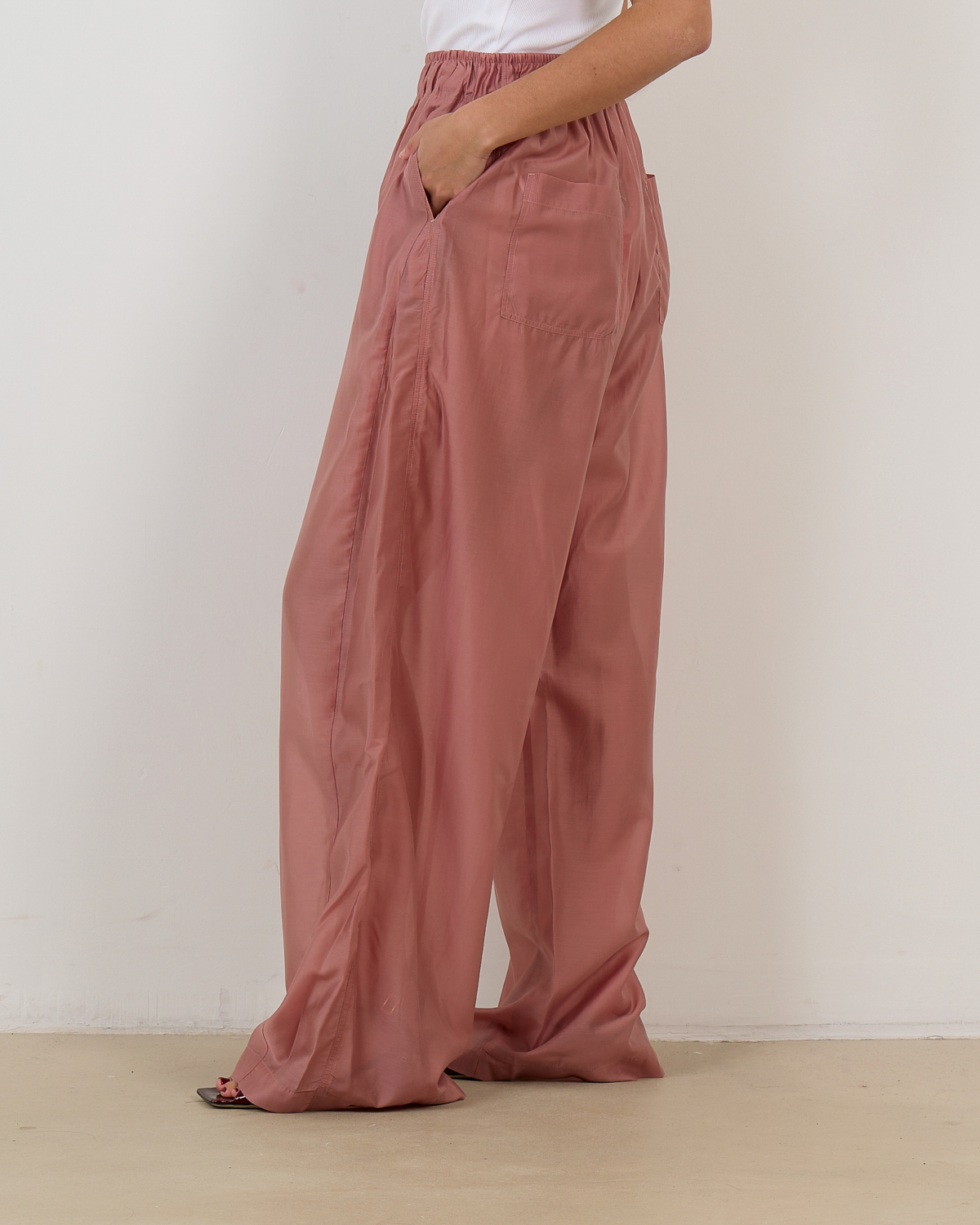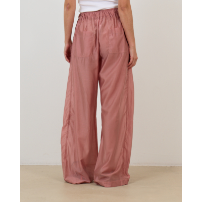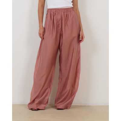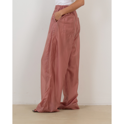 Deze elegante mussola pantalon in een zachte roze tint brengt verfijnde nonchalance naar je garderobe. De wijde regular fit en elastische tailleband zorgen voor ultiem draagcomfort, terwijl de zachte lyocell-polyester mix (85% lyocell, 15% polyester) een luxueuze uitstraling geeft. Praktische steekzakken completeren het tijdloze ontwerp.