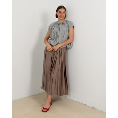 De Blouse Pumice Grey van Tibi combineert perfect met een plissé rok voor een harmonieuze look, of met een tailored pantalon voor een zakelijke uitstraling. Voor een relaxte stijl draag je deze dames kleding Tibi blouse met een wijde broek en minimalistische accessoires.