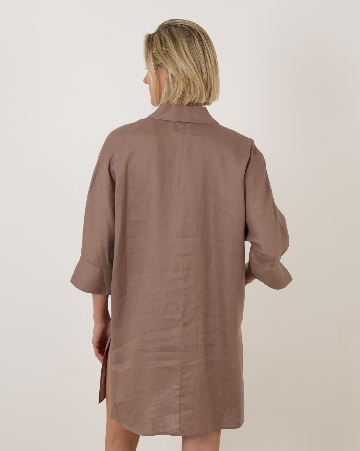 Linnen jurk van het merk FFC, perfect voor een stijlvolle en comfortabele look. Deze jurk is gemaakt van 100% linnen en heeft een elegante pasvorm. Het design is voorzien van een kraagje met een subtiele knoopsluiting, driekwartmouwen en twee verborgen steekzakken in de zijnaden voor extra gemak. Daarnaast zorgen de kleine splitjes in de zoom voor een speelse en luchtige uitstraling. Ideaal om zowel casual als chic te dragen!