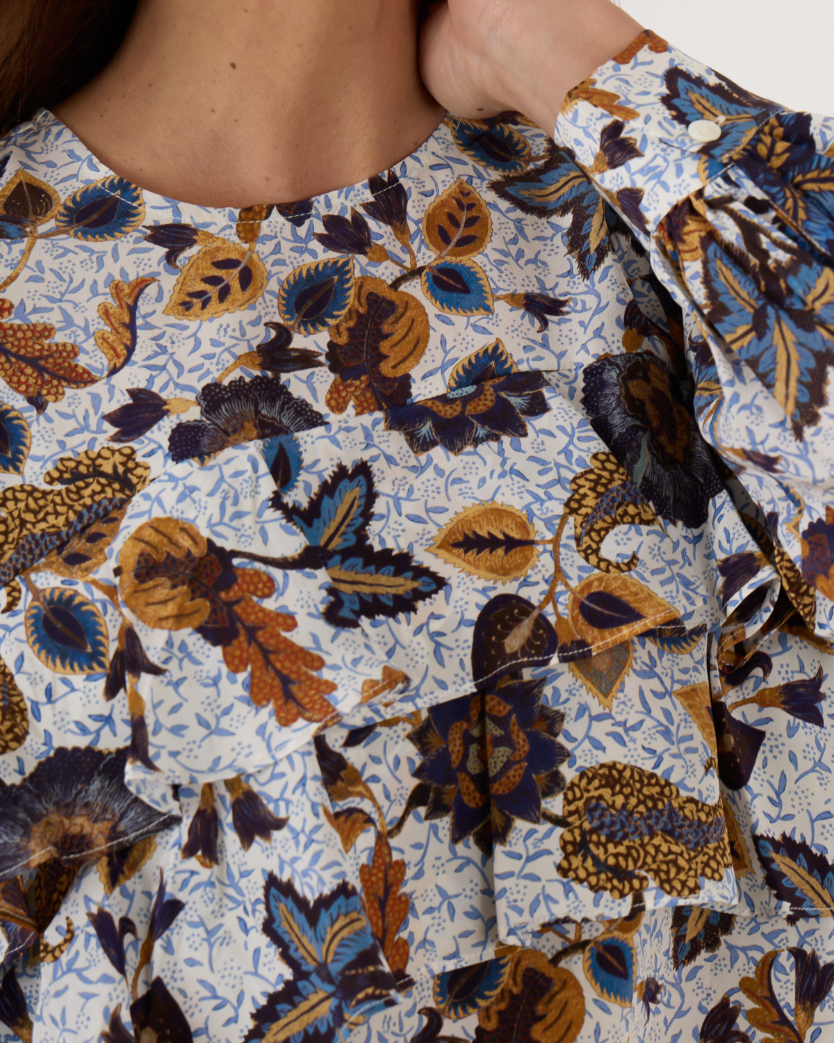 De Freja Blouse van Ulla Johnson komt in de blauwe kleur Jasmine en is uitgevoerd in zijdeachtige plissé satijn. De blouse heeft een iets losvallende pasvorm en is voorzien van plooitjes dat het silhouet versterkt.